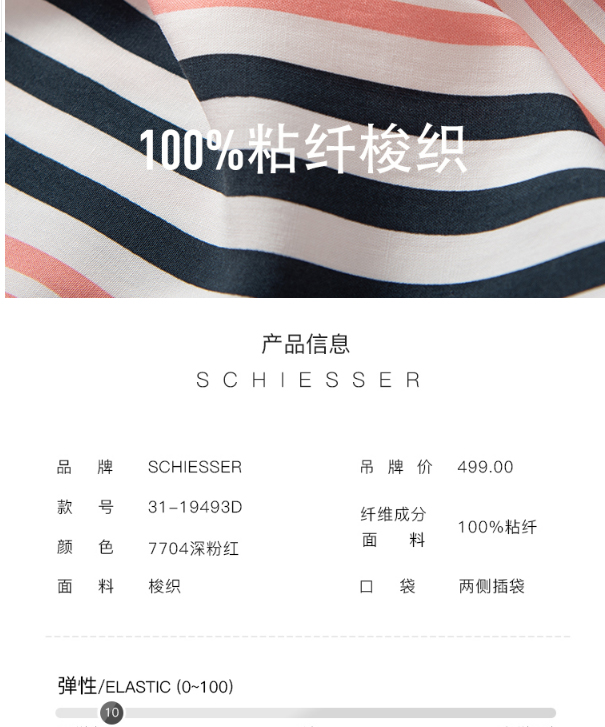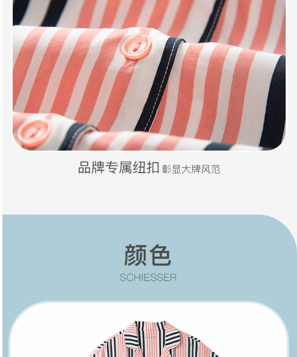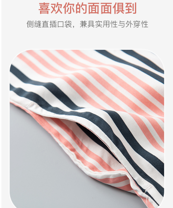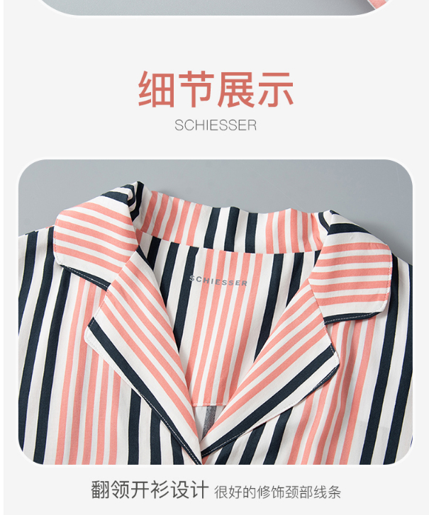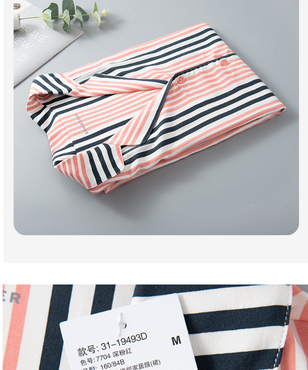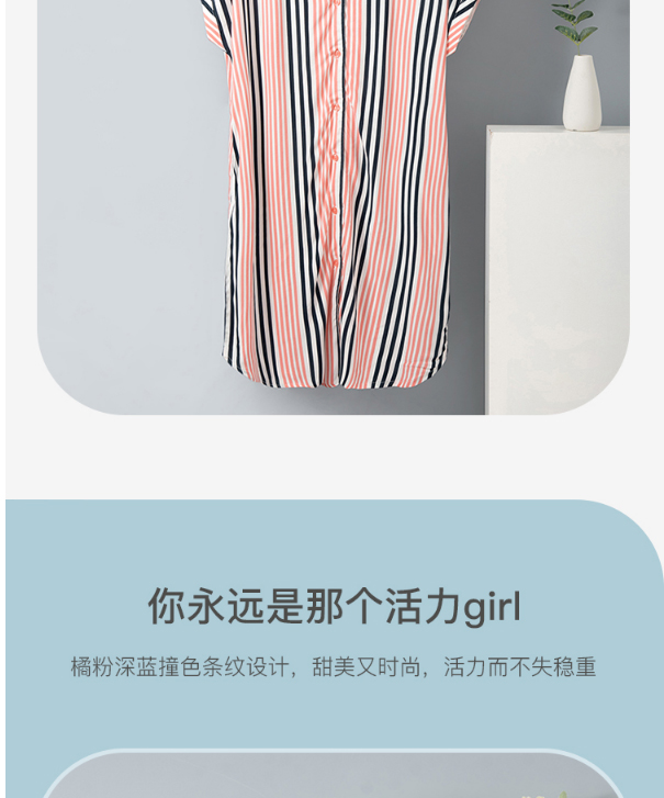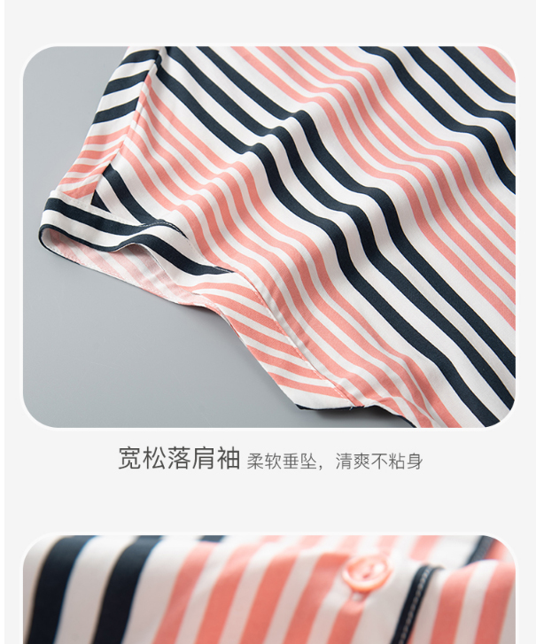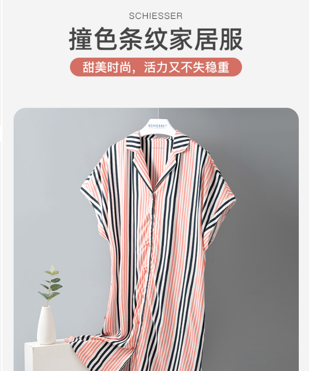 舒雅女士睡裙 粘纤梭织2022春夏新款家居服条纹开衫中裙31/19493D