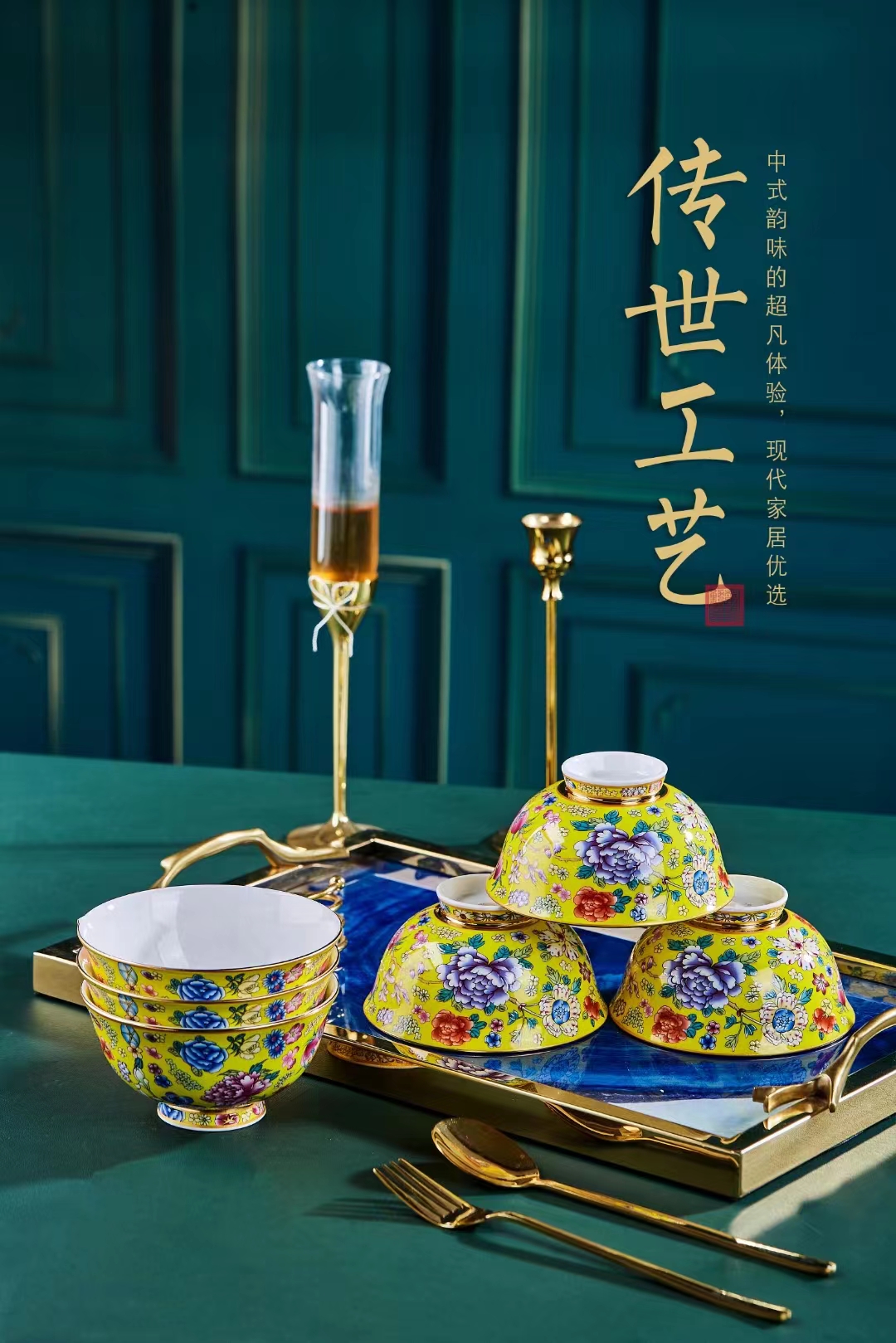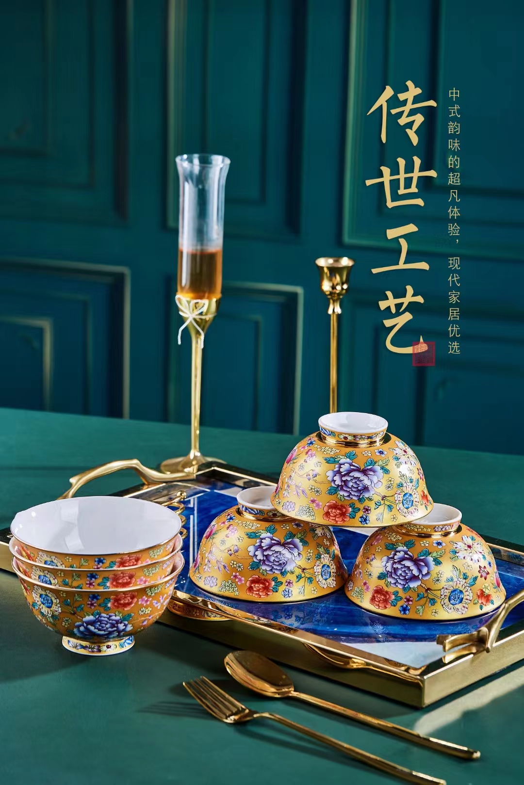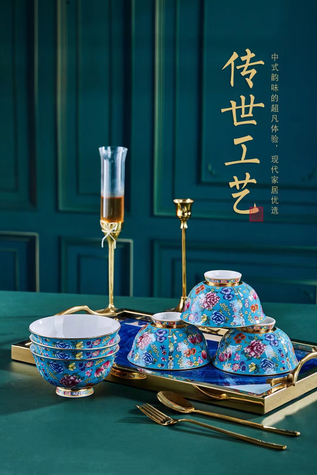 国风艺术珐琅餐具