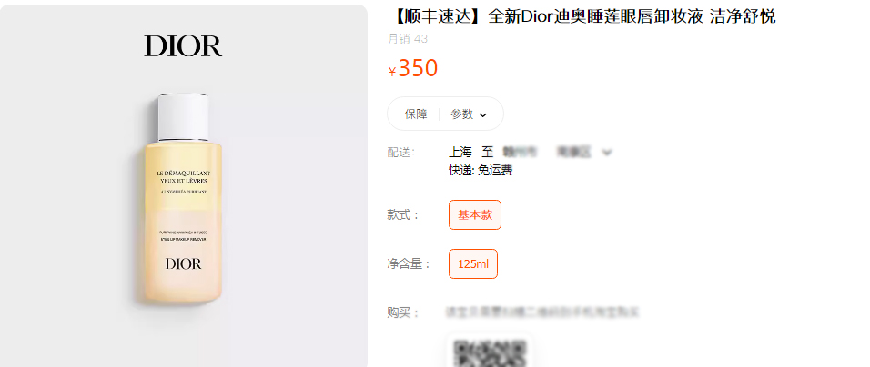 【商品名称】dior迪奥净澈眼唇卸妆液10ml