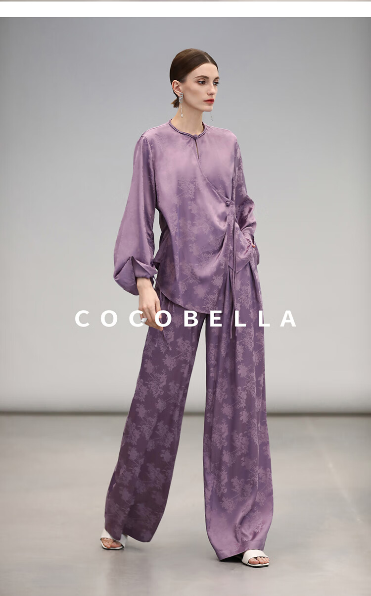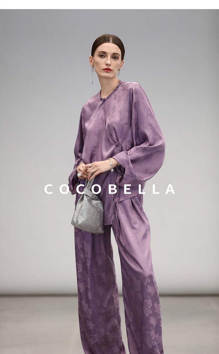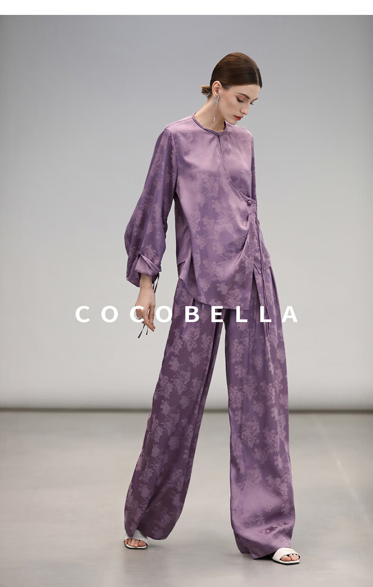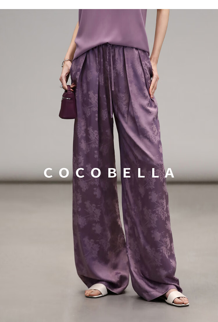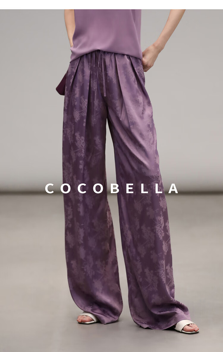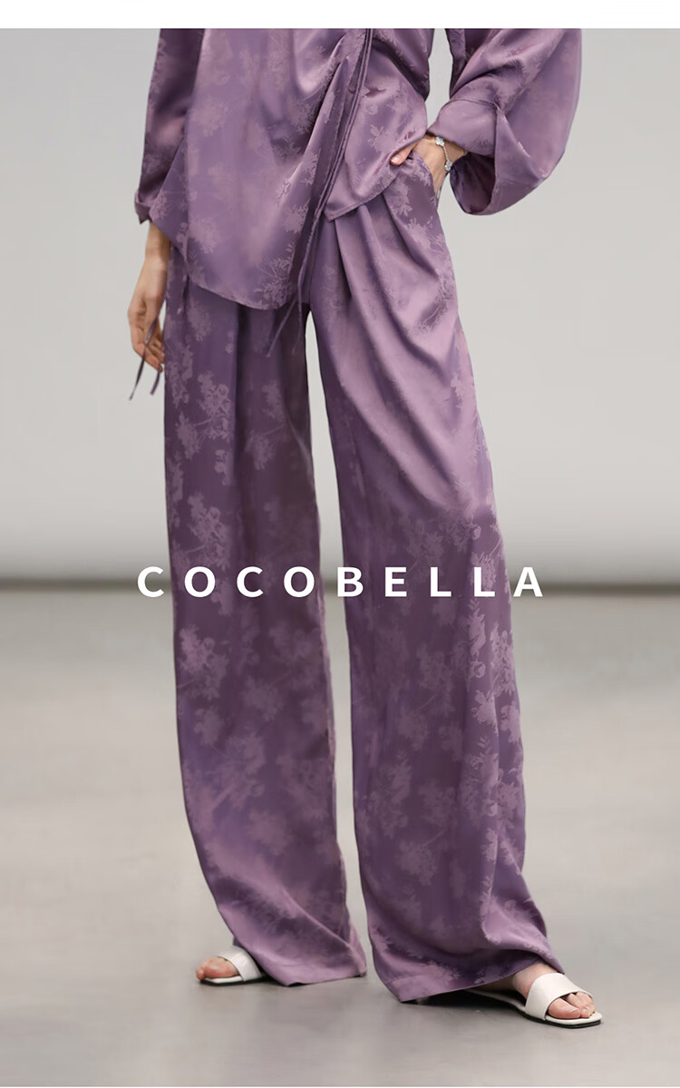COCOBELLA暗纹提花光泽缎面垂坠阔腿裤春夏新中式山本裤PA3026