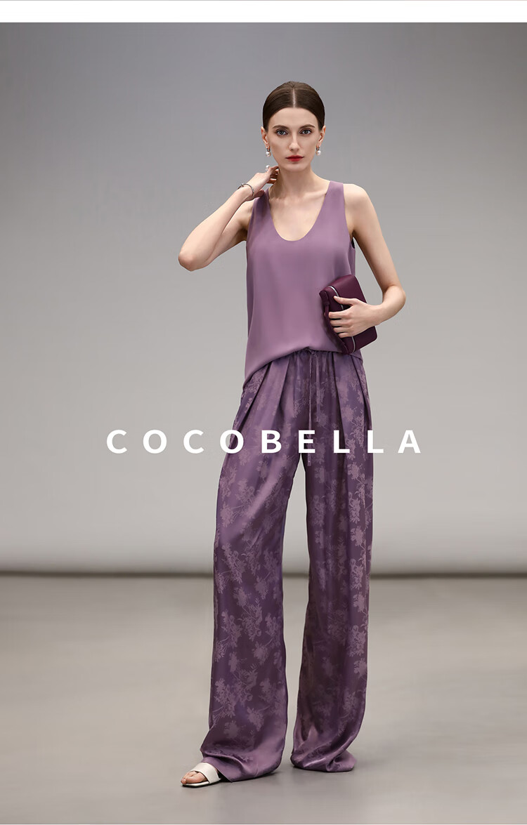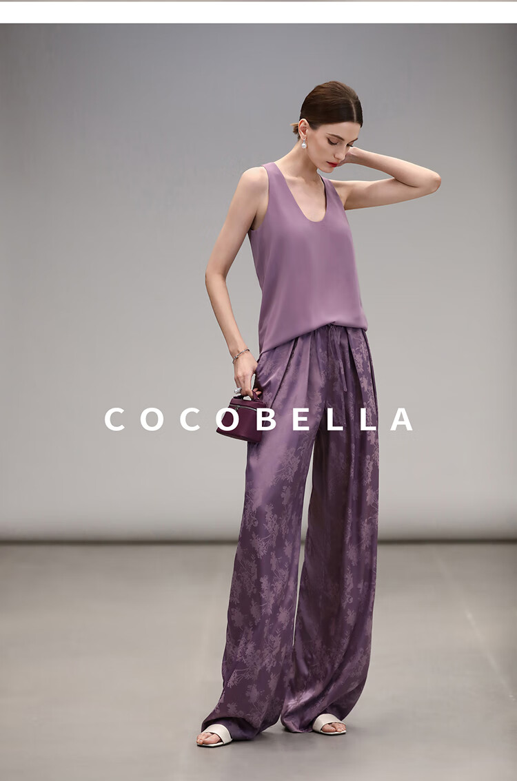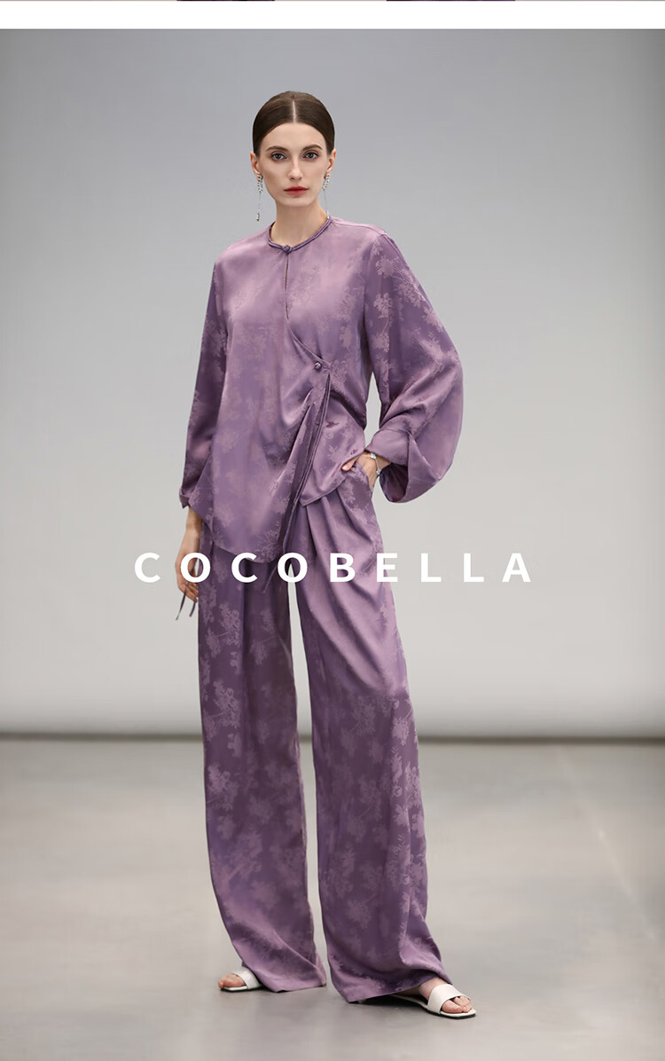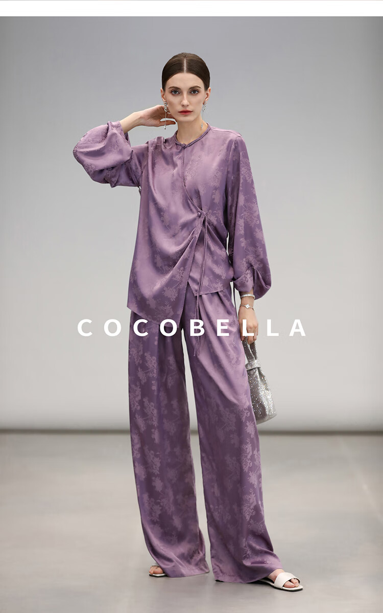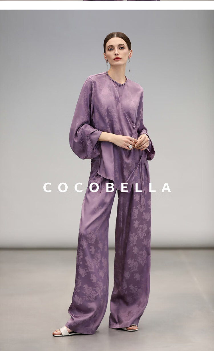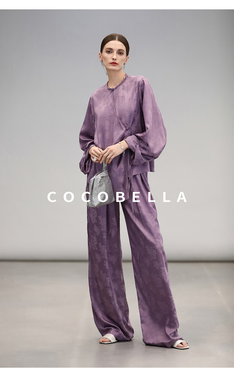 COCOBELLA暗纹提花光泽缎面垂坠阔腿裤春夏新中式山本裤PA3026