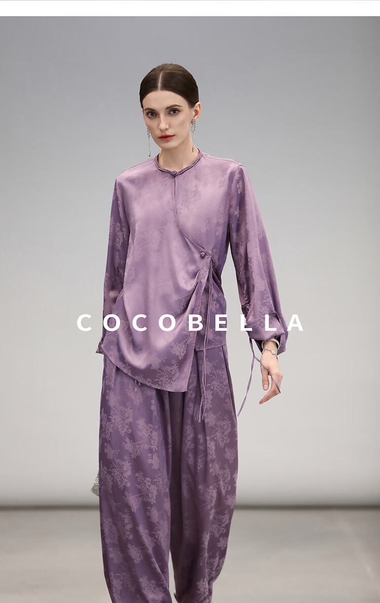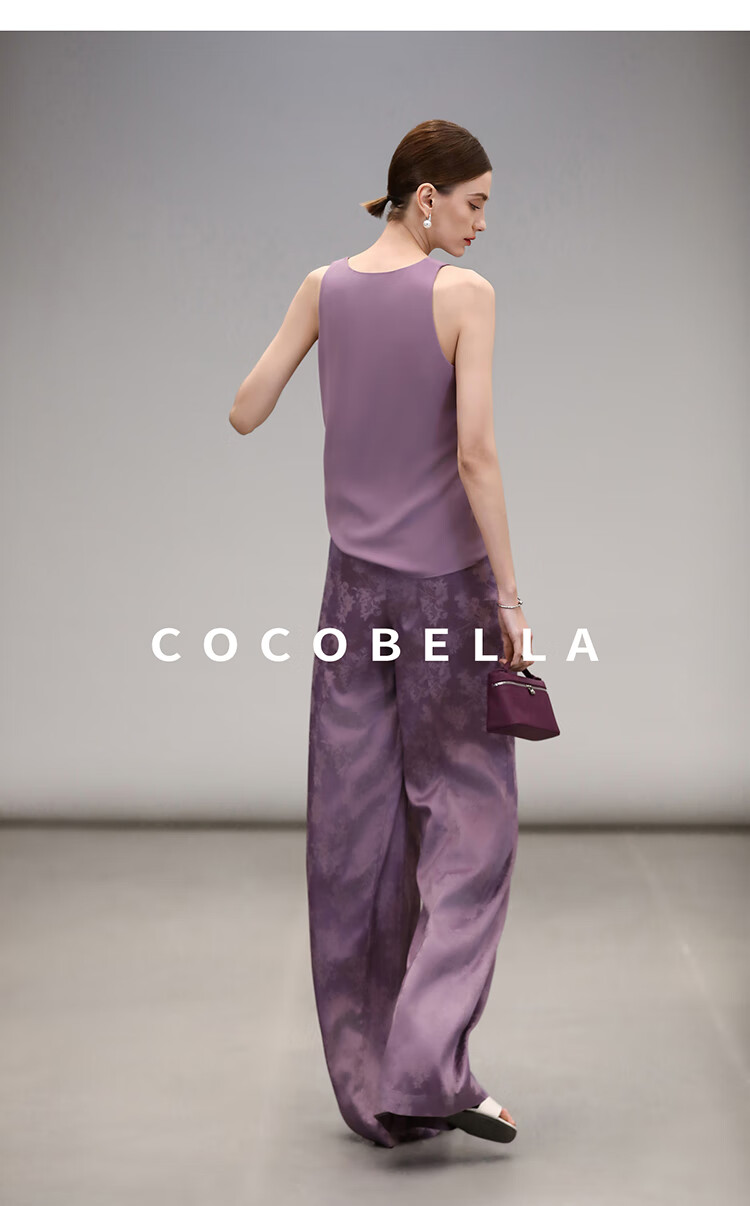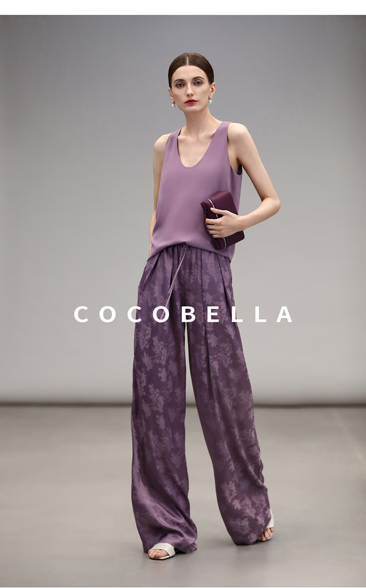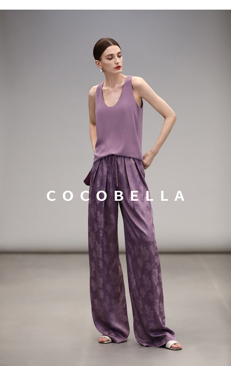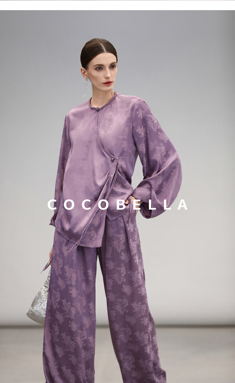 COCOBELLA暗纹提花光泽缎面垂坠阔腿裤春夏新中式山本裤PA3026