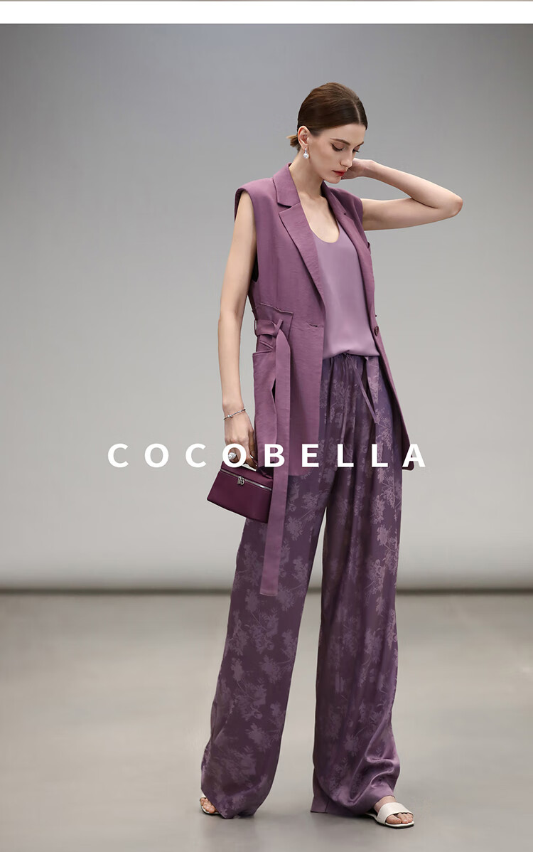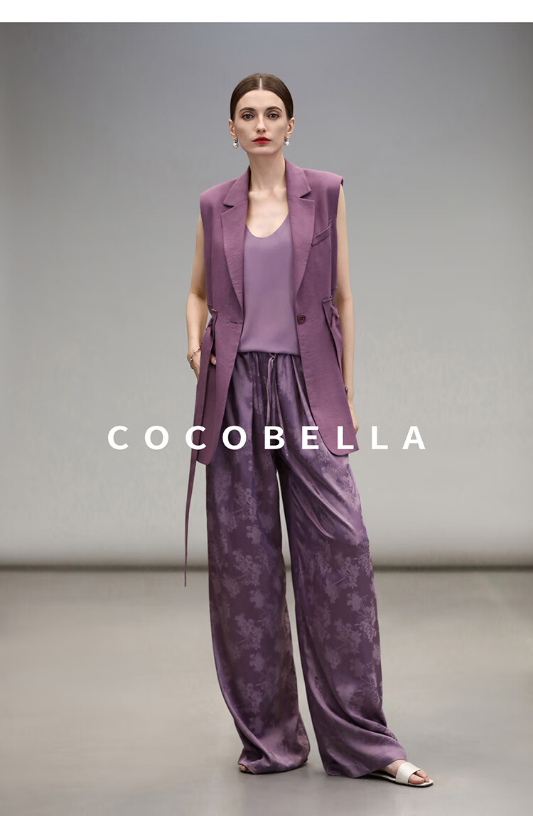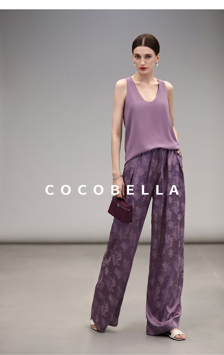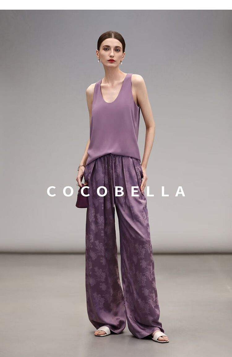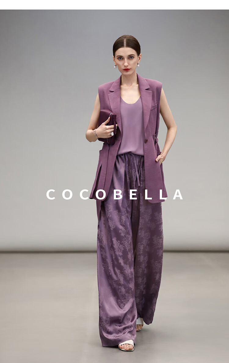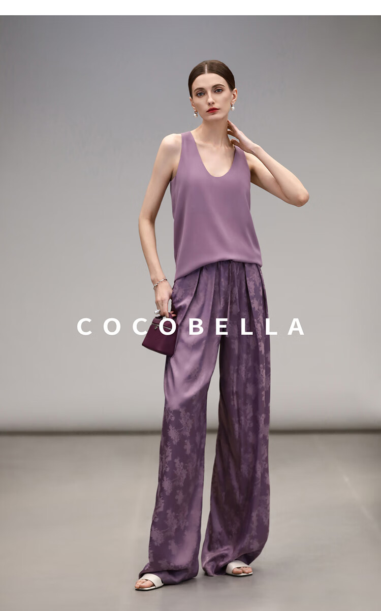 COCOBELLA暗纹提花光泽缎面垂坠阔腿裤春夏新中式山本裤PA3026