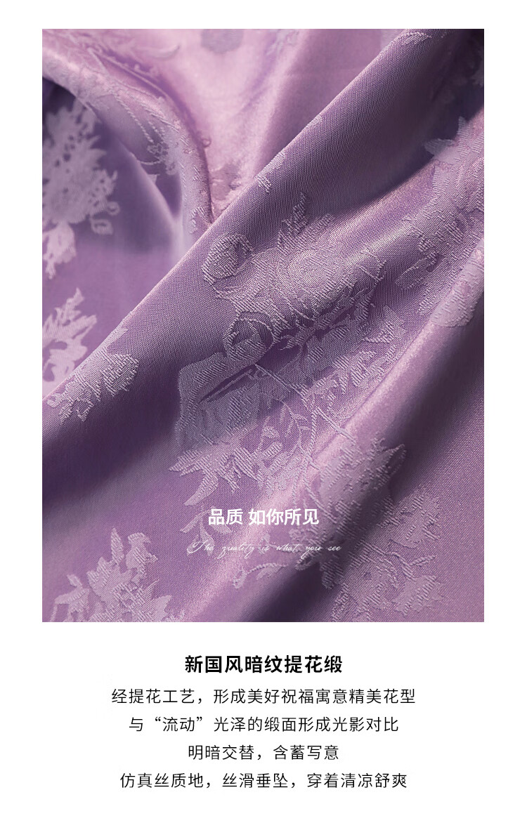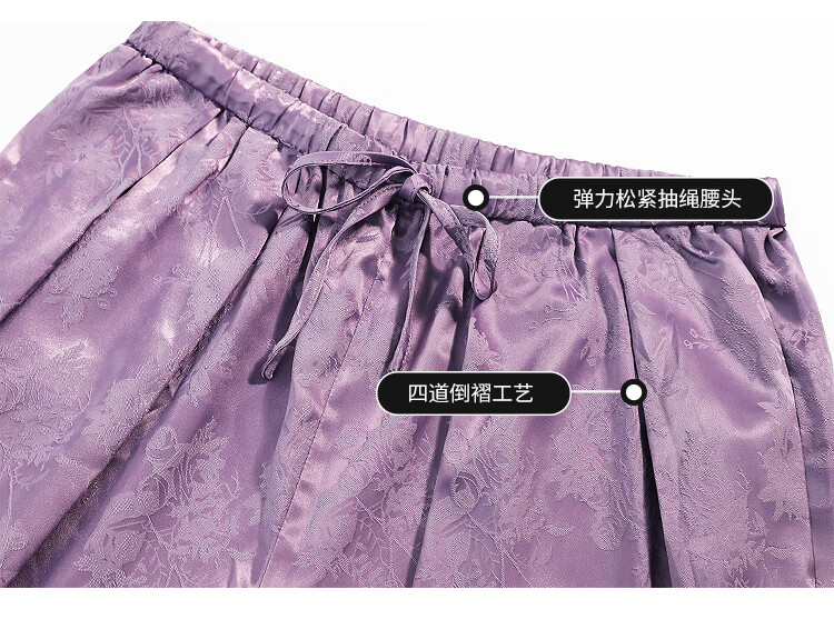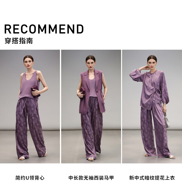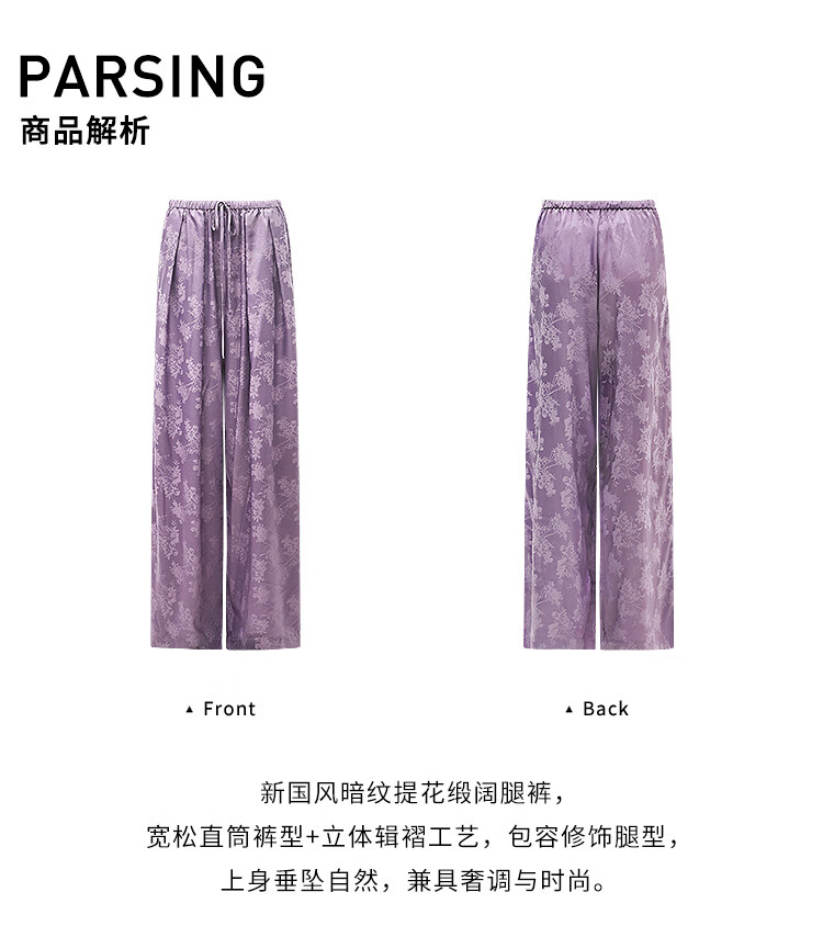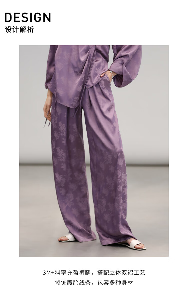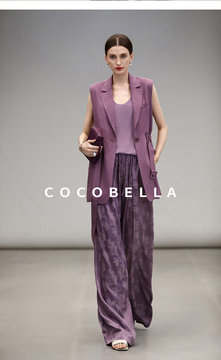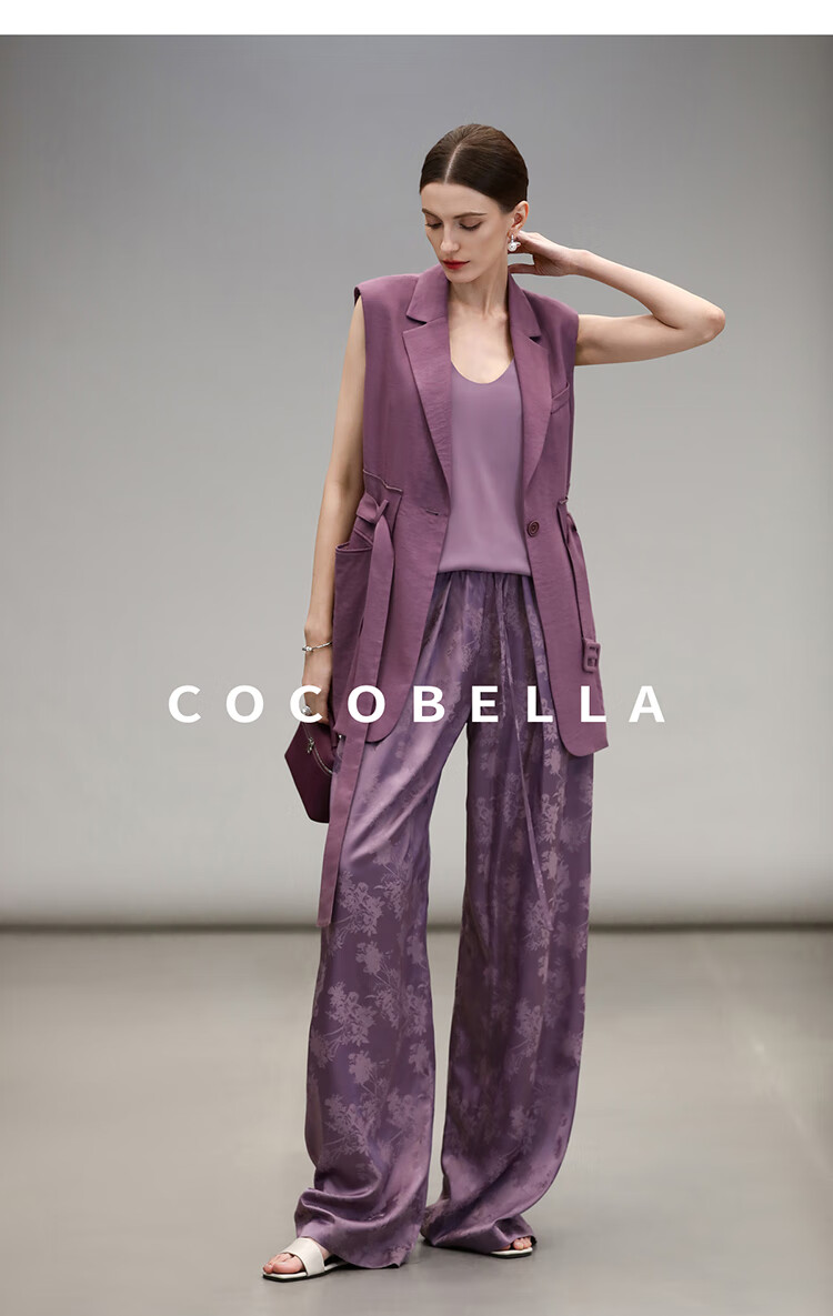 COCOBELLA暗纹提花光泽缎面垂坠阔腿裤春夏新中式山本裤PA3026