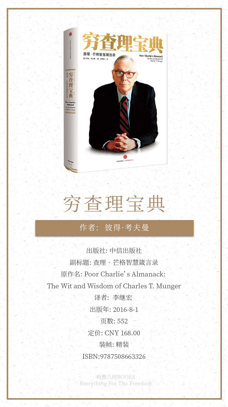 【No.21一颗韭菜的自我修养】穷查理宝典 : 查理•芒格智慧箴言录