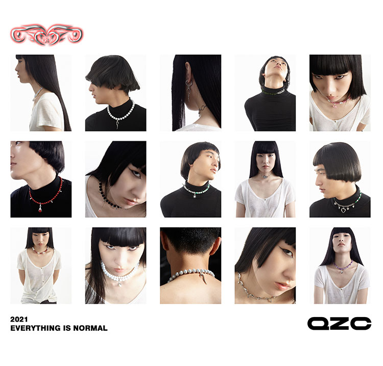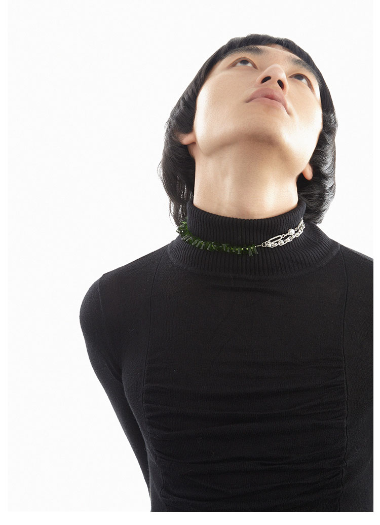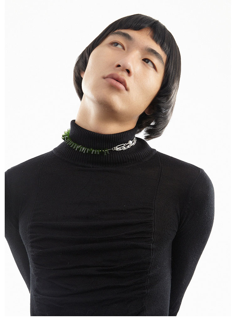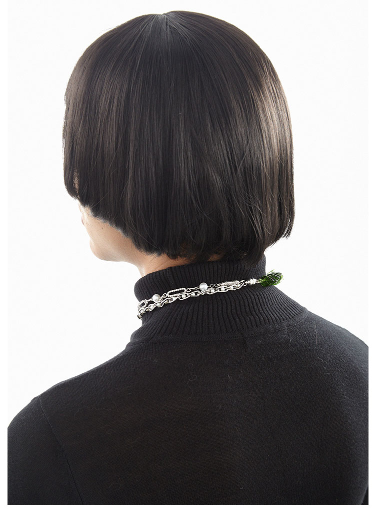 QZC2000 时装亚克力叶子拼接珍珠镶钻珠铁链磁铁吸扣项链男女饰品