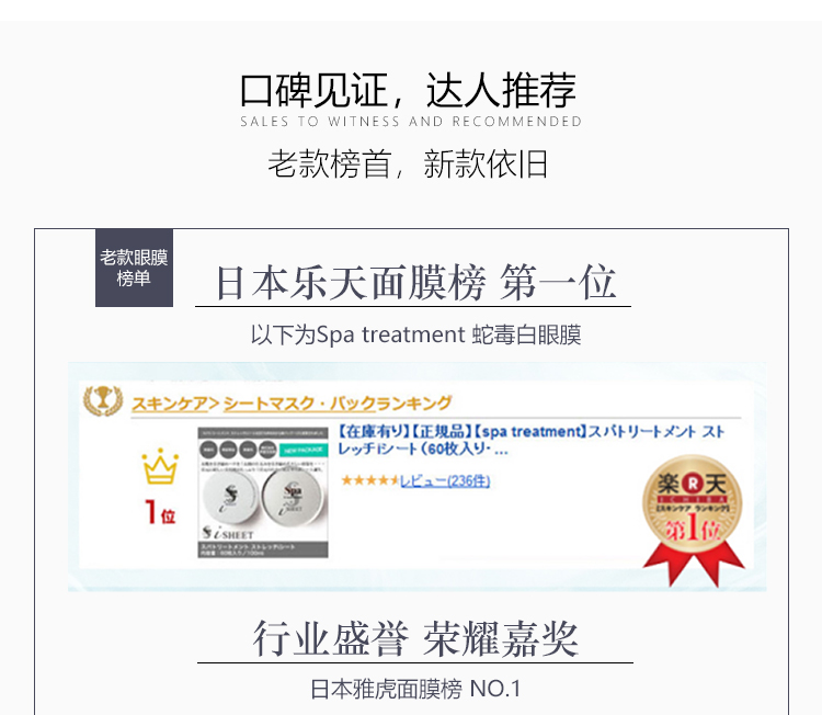 SpaTreatment 紧致褪黑蛇毒白眼膜 60枚 日本