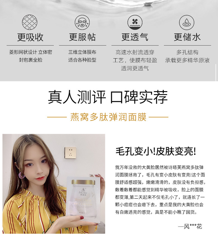 诗珞芙燕窝多肽弹润面膜 高效保湿 蕴含胶原蛋白肌肽和多种植物萃取精华