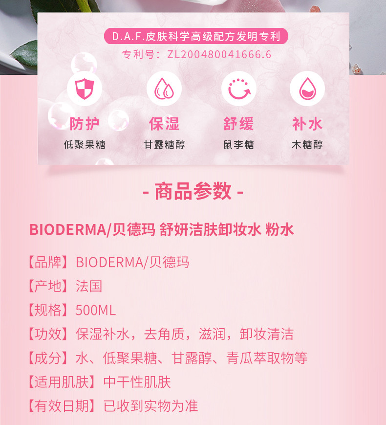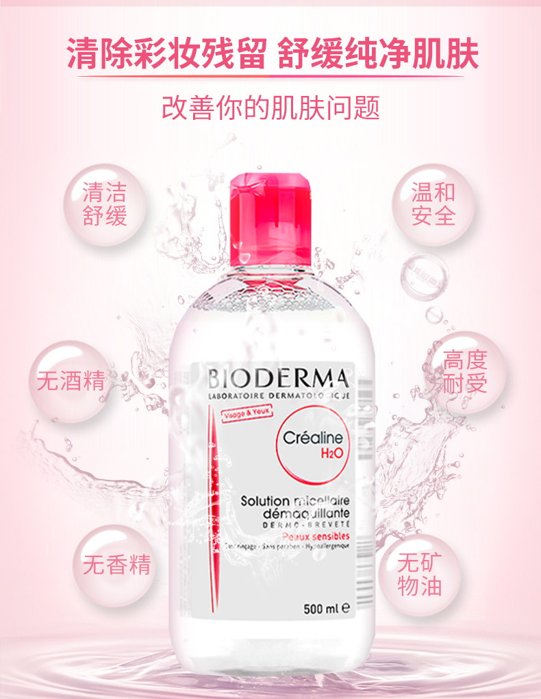 BIODERMA贝德玛 舒妍洁肤卸妆水 粉水 500ML 法国