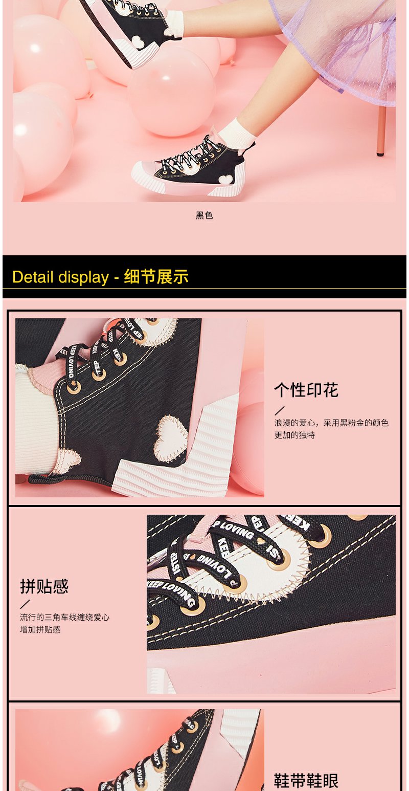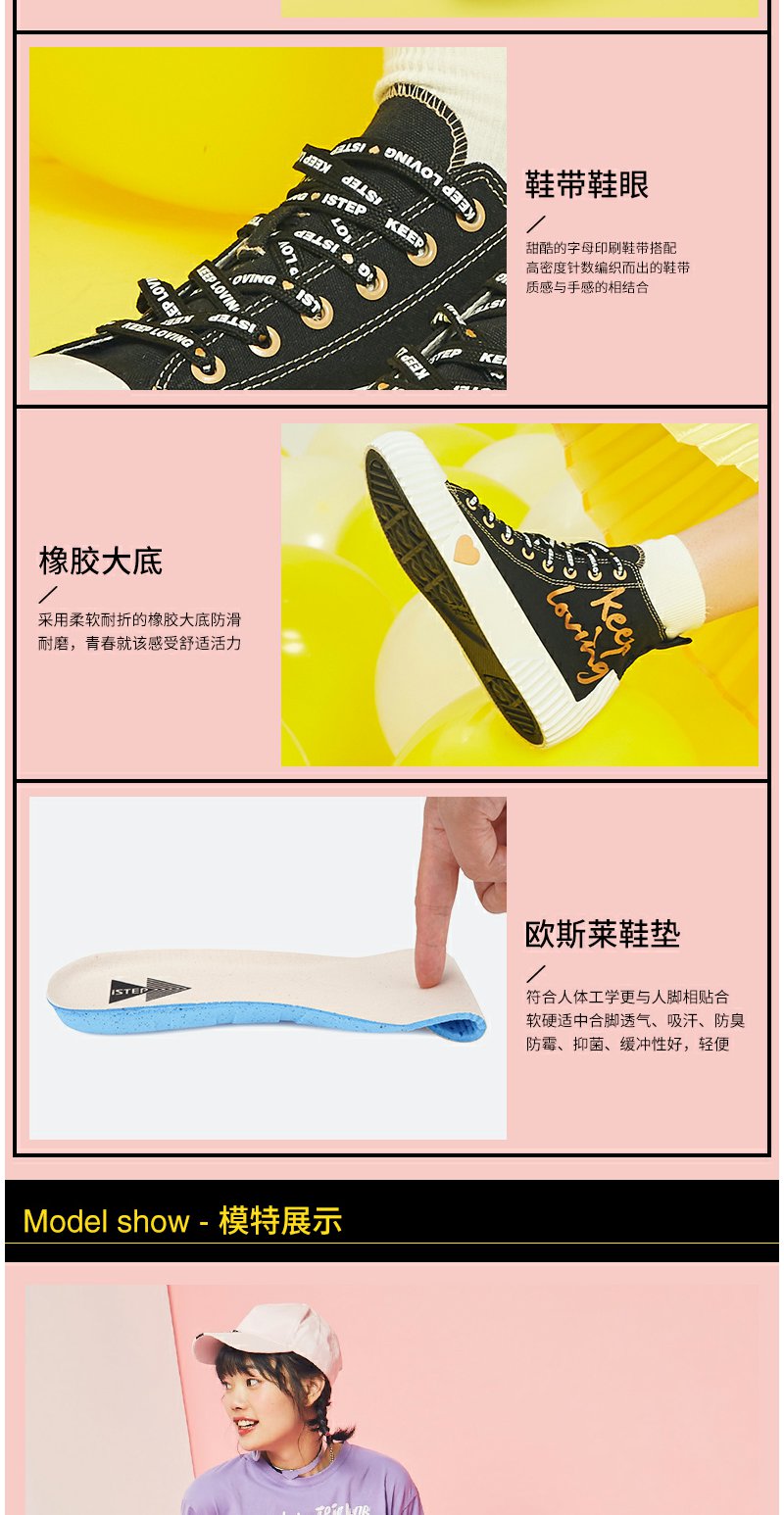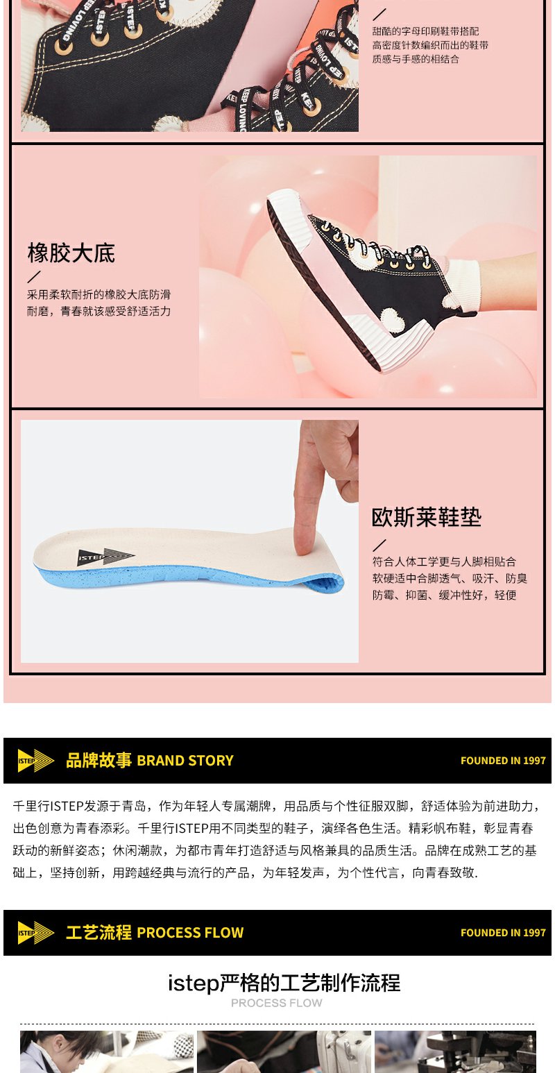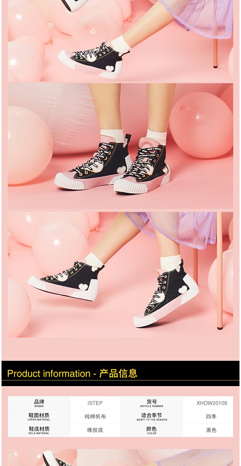 【正品】iSTEP高帮帆布鞋女2022秋冬新品女鞋情人节爱心平底拼色潮流板鞋