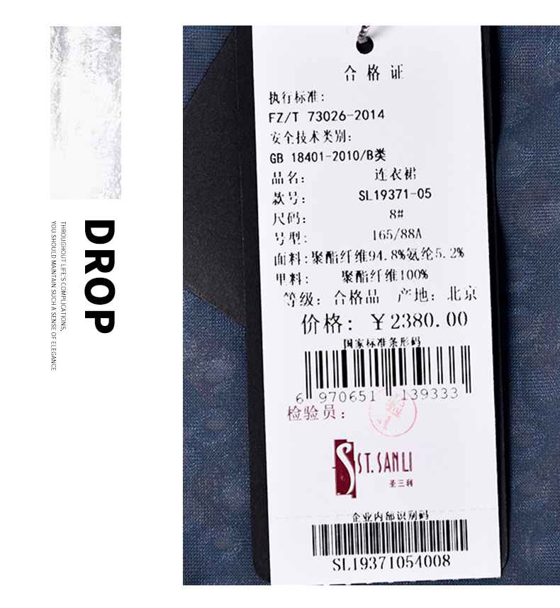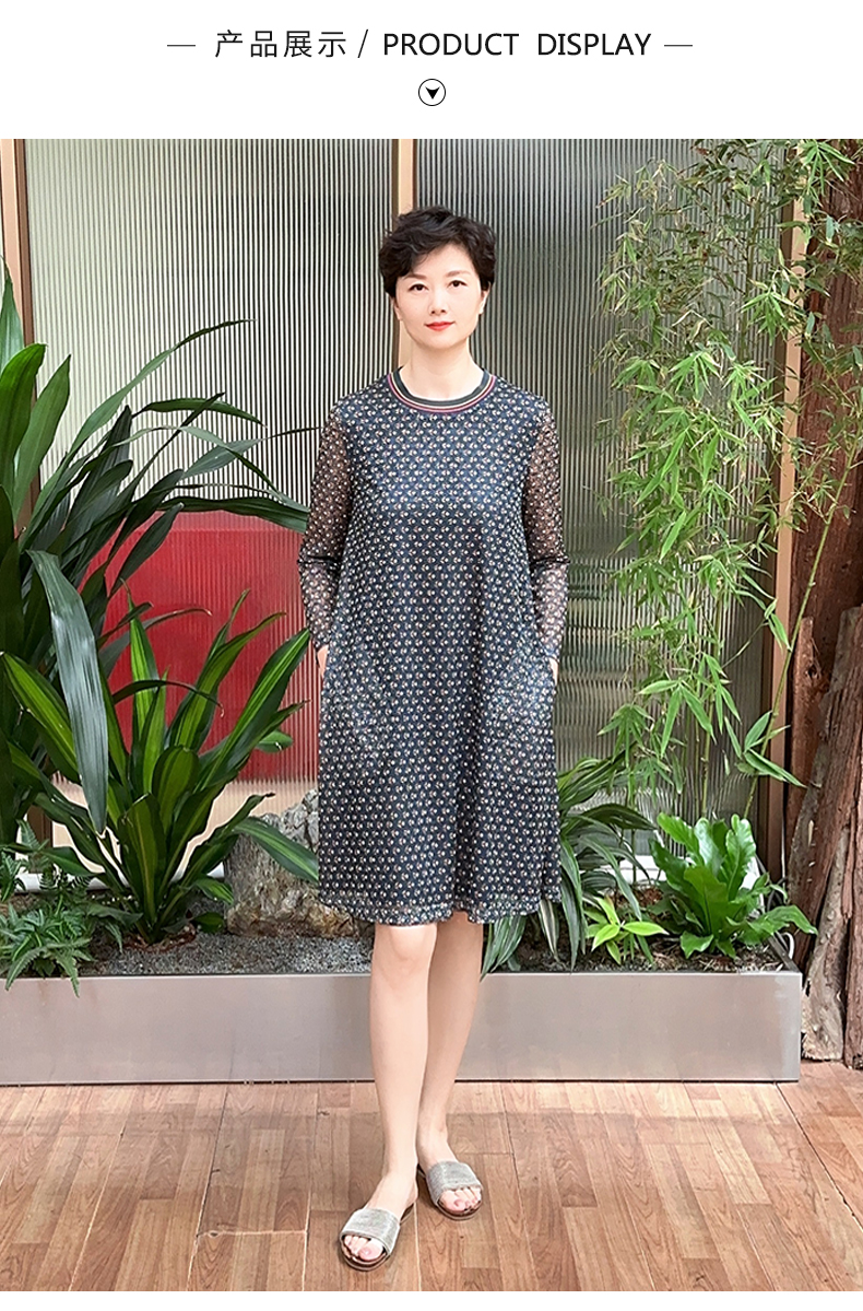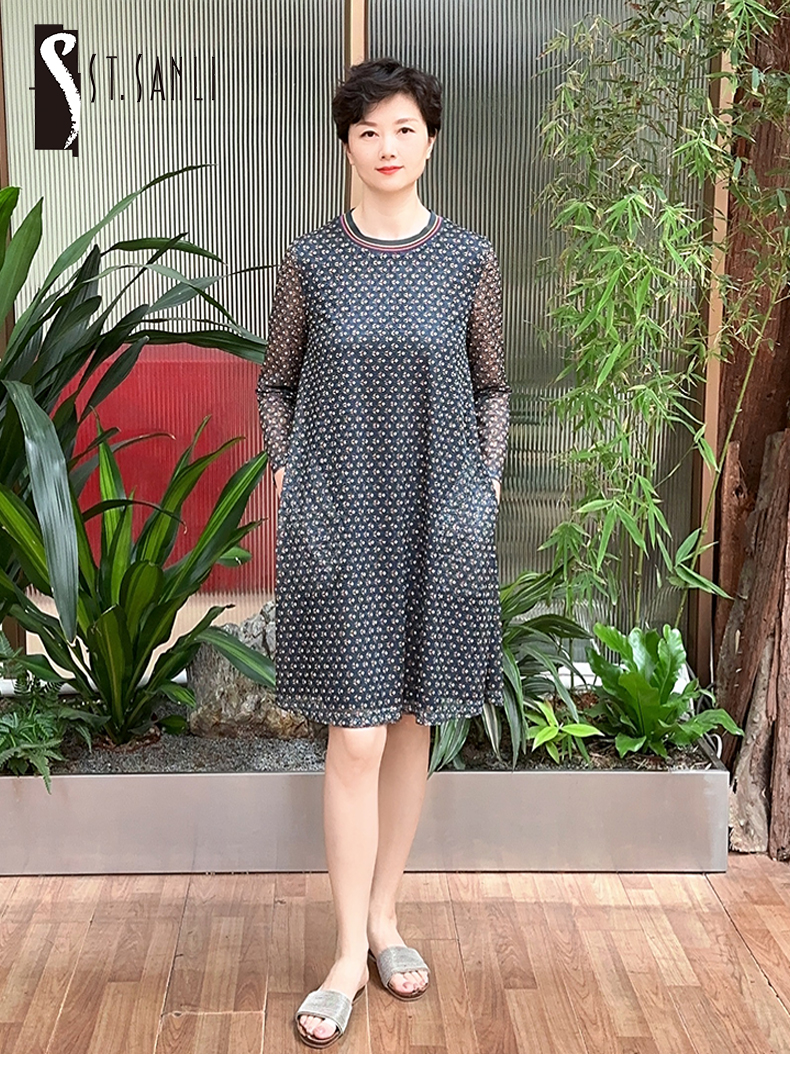 圣三利女装中长款圆领印花镂连衣裙SL1937105