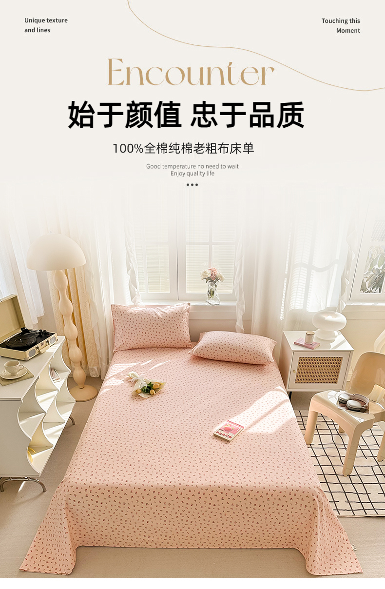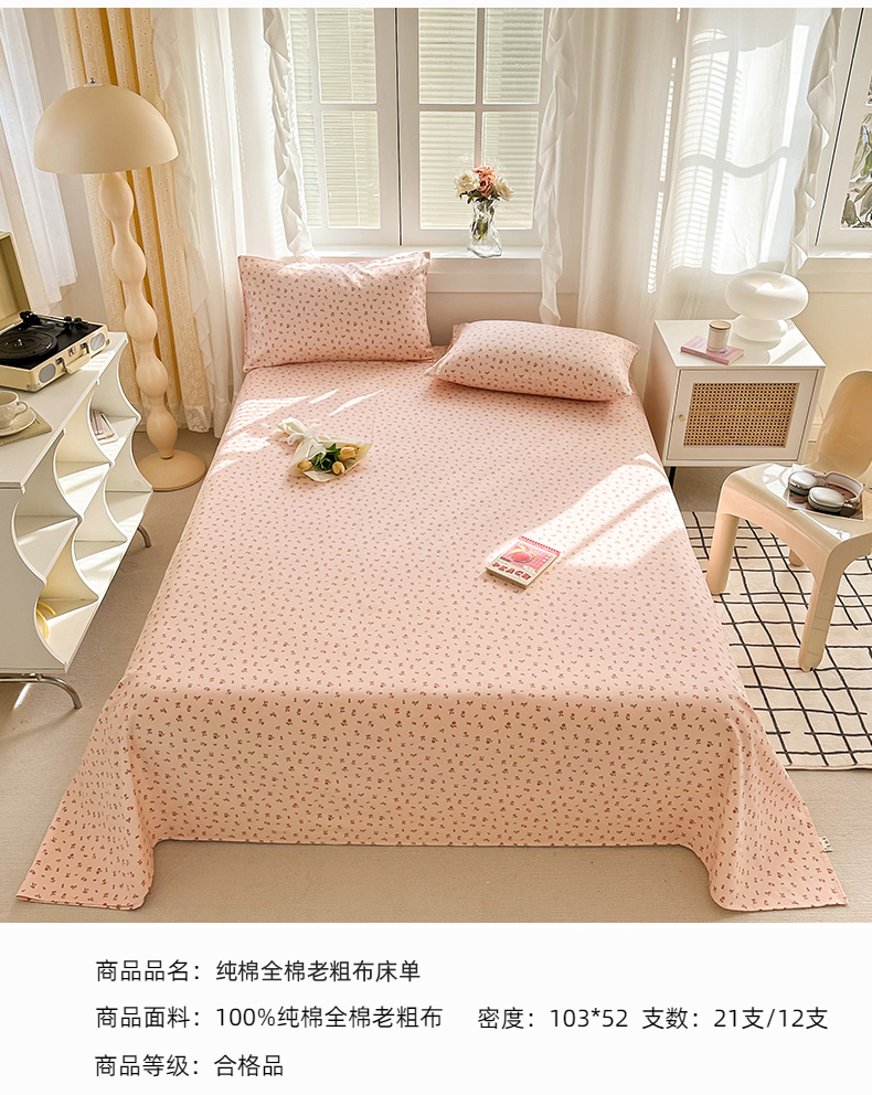 自然醒老粗布床单单件凉席纯棉全棉单人宿舍棉麻夏季凉感亚麻被单三件套JY