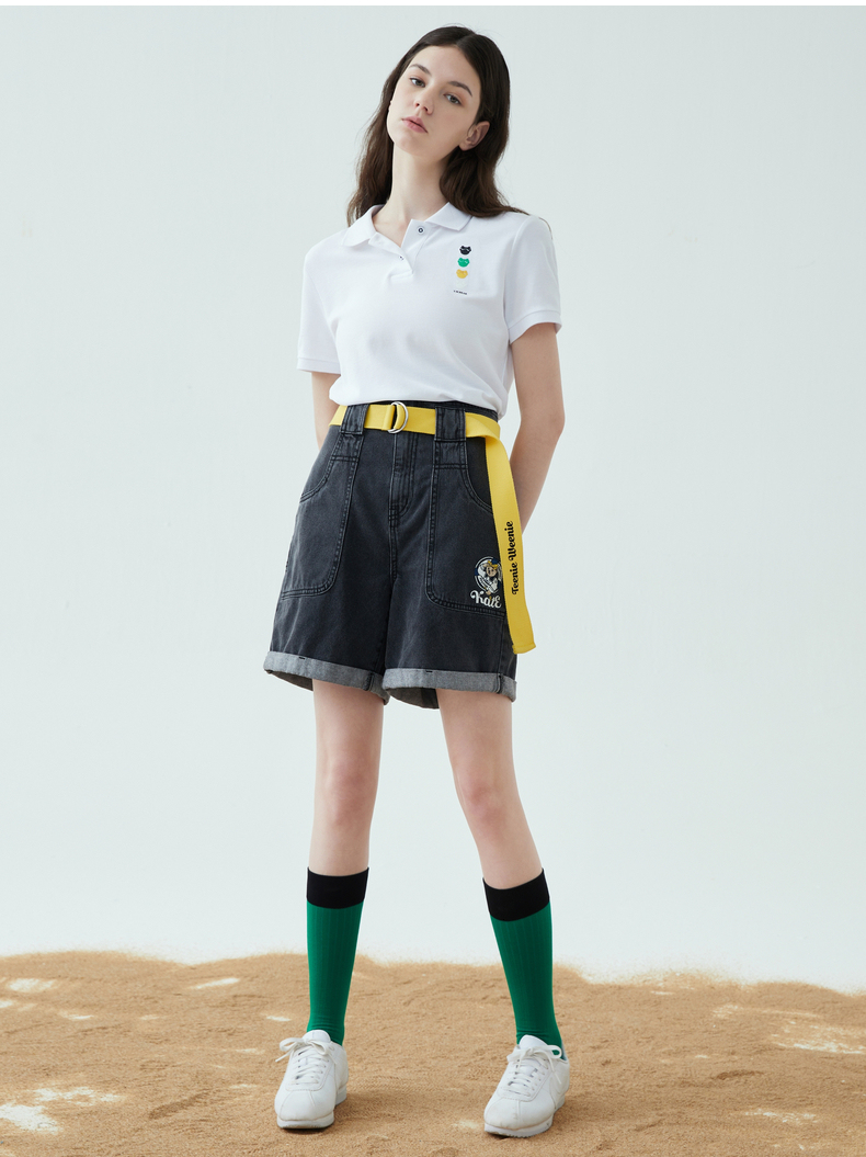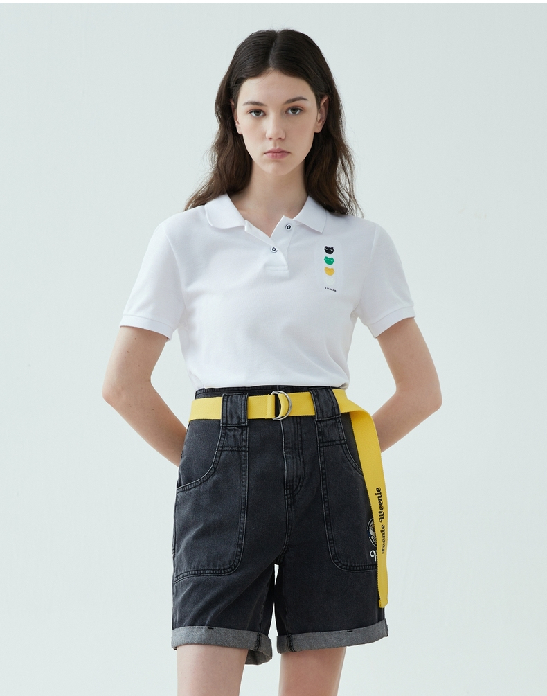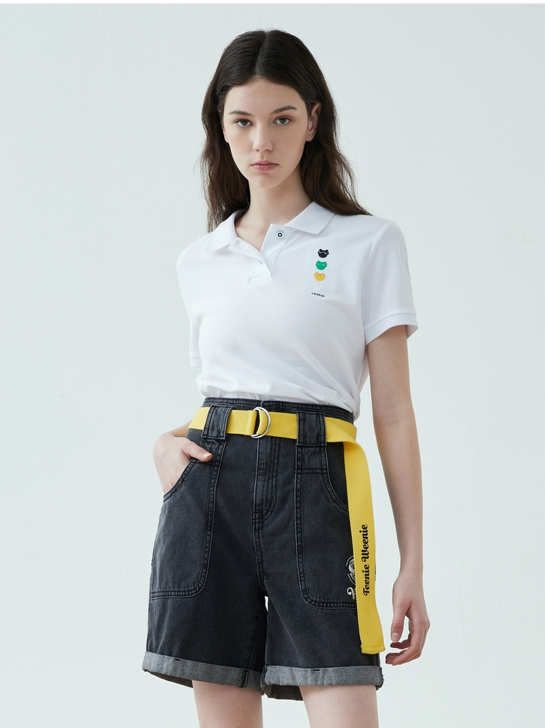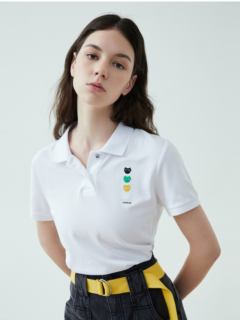 TeenieWeenie小熊22夏新款百搭纯色简约polo领短袖套头T恤女TTHW222401P