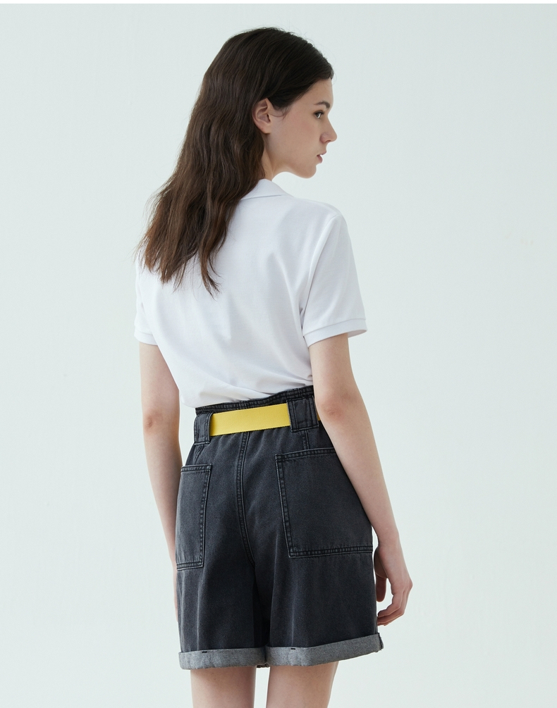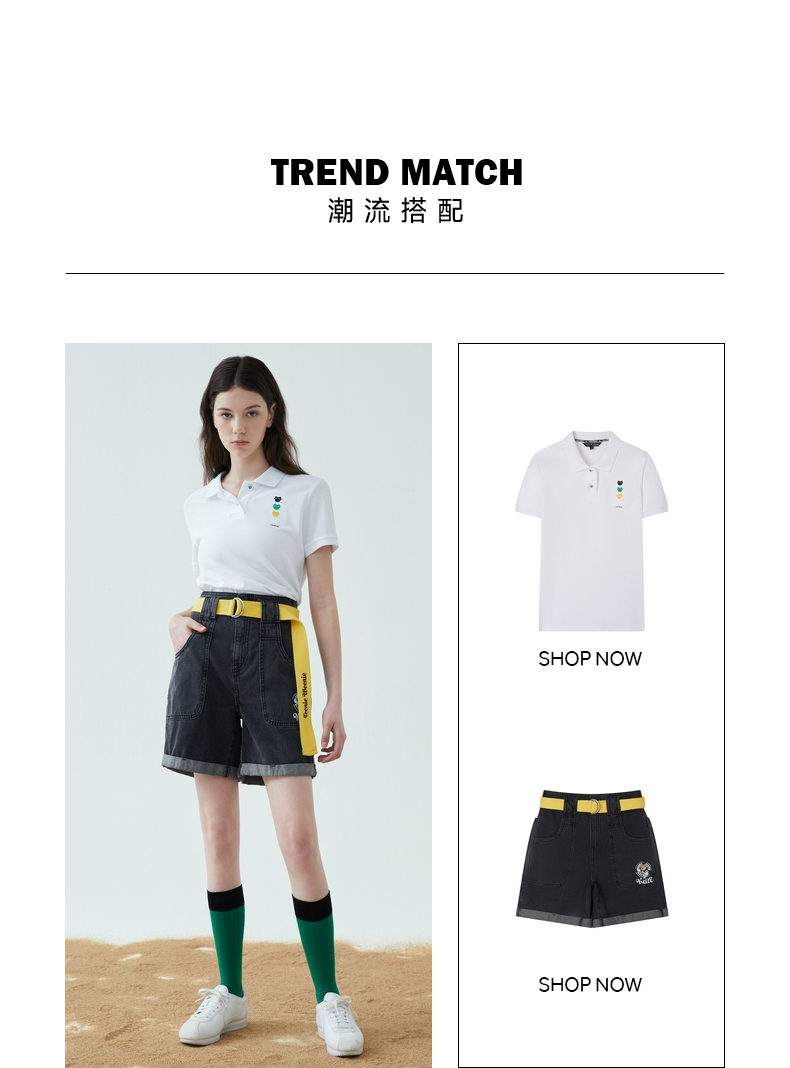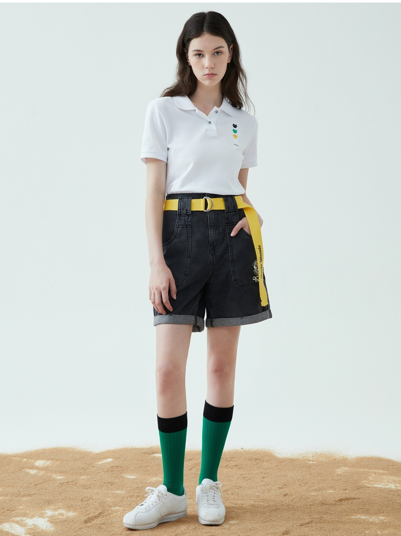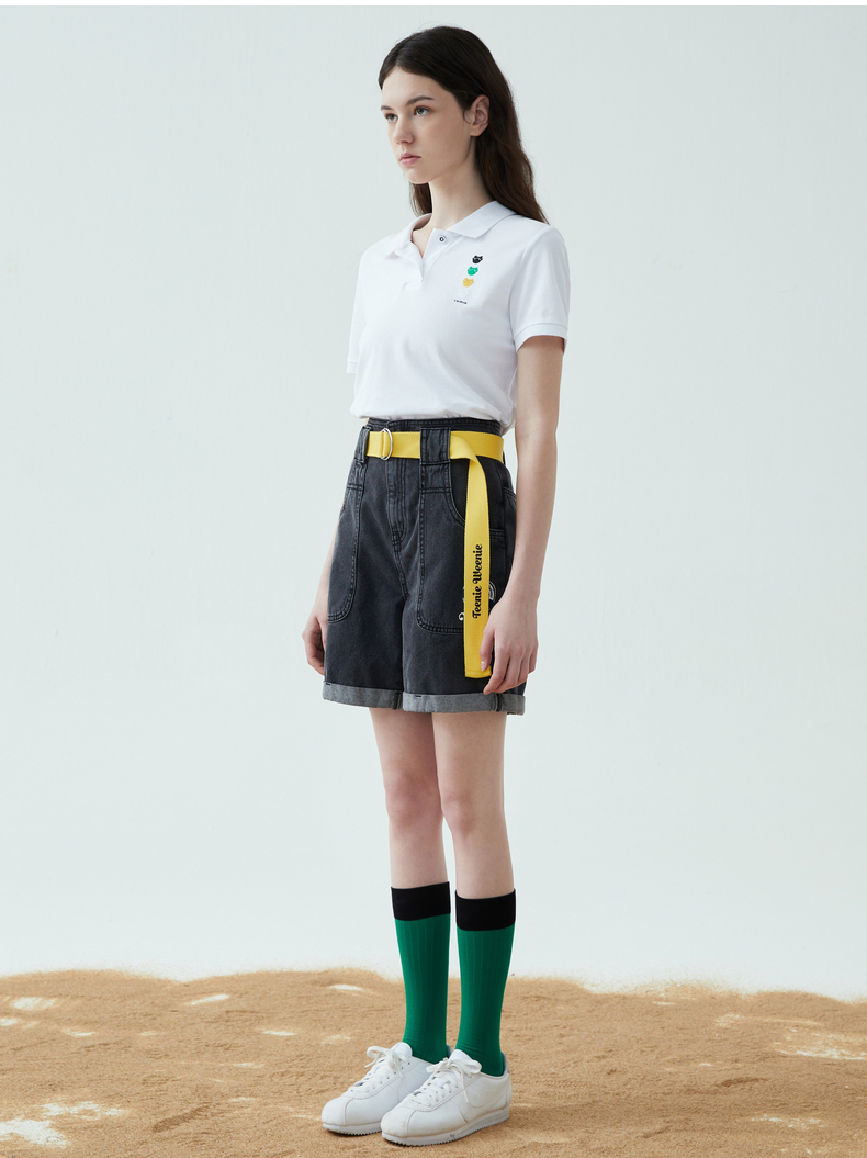 TeenieWeenie小熊22夏新款百搭纯色简约polo领短袖套头T恤女TTHW222401P