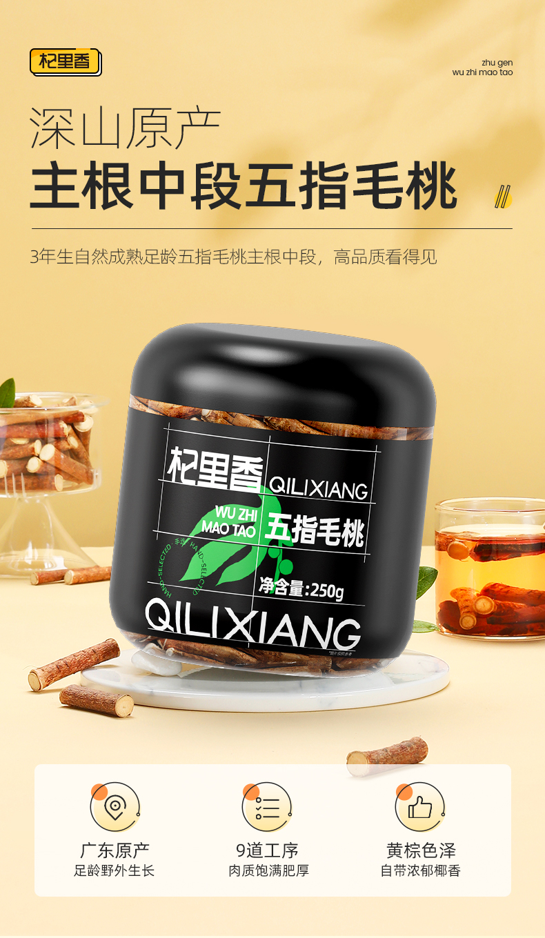 杞里香250g圆罐五指毛桃道地广东河源产区,3年生长,深山采挖椰香浓郁,肉质肥厚
