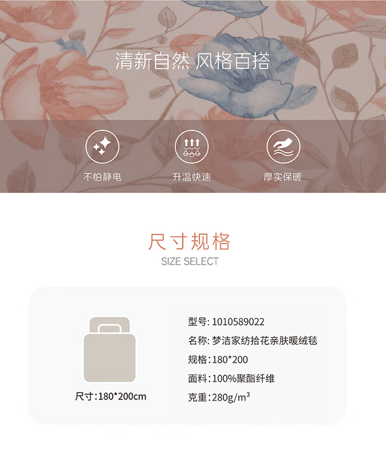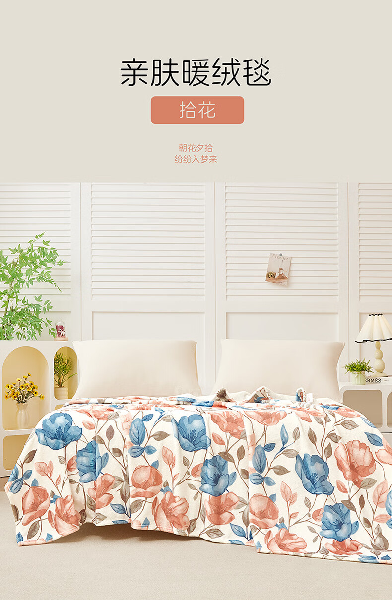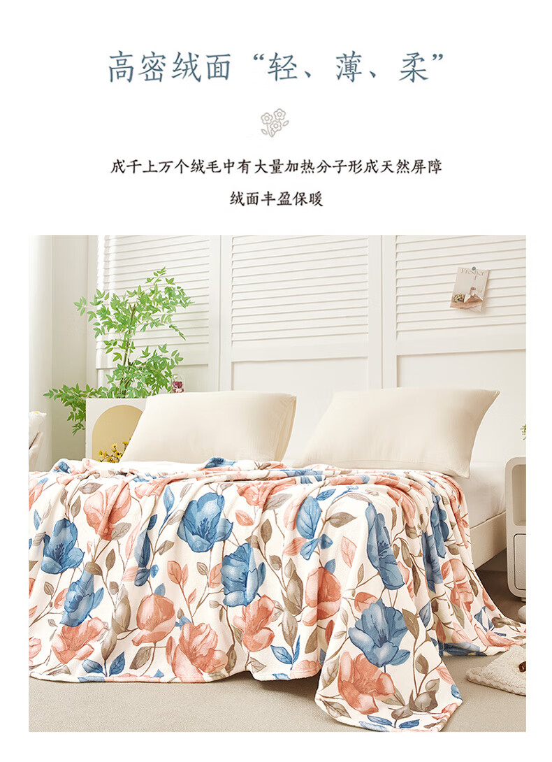 【多样屋专柜】梦洁法兰绒毯拾花亲肤暖绒毯午睡毯180*200cm