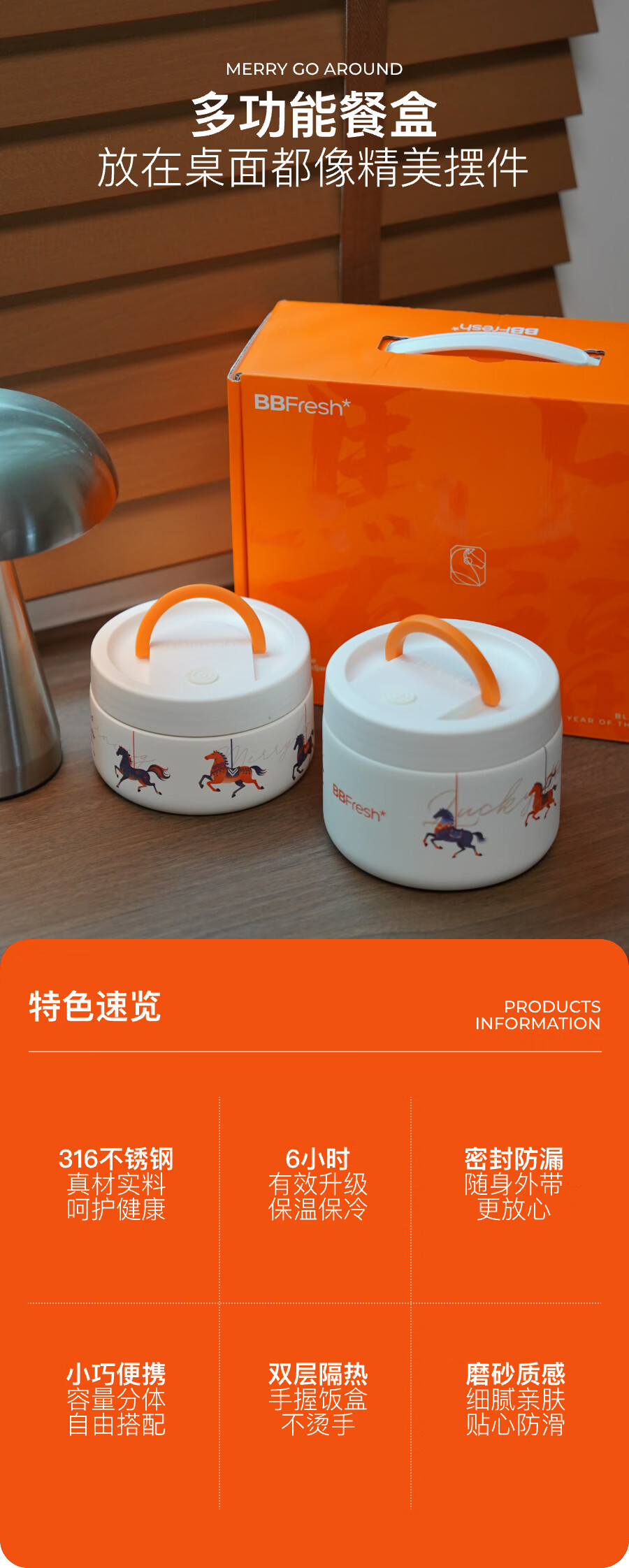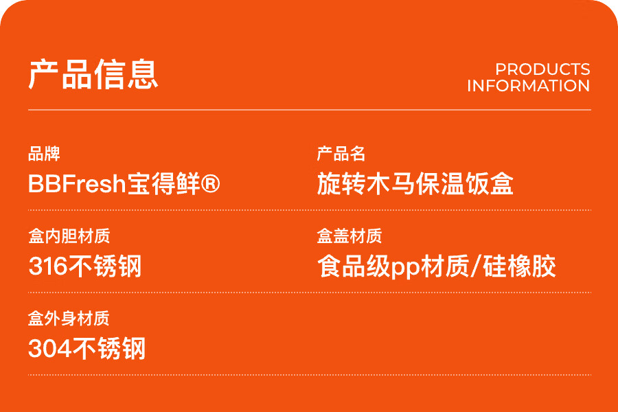 宝得鲜-316不锈钢慕斯小鲜盒马年款旋转木马大容量盒便当盒