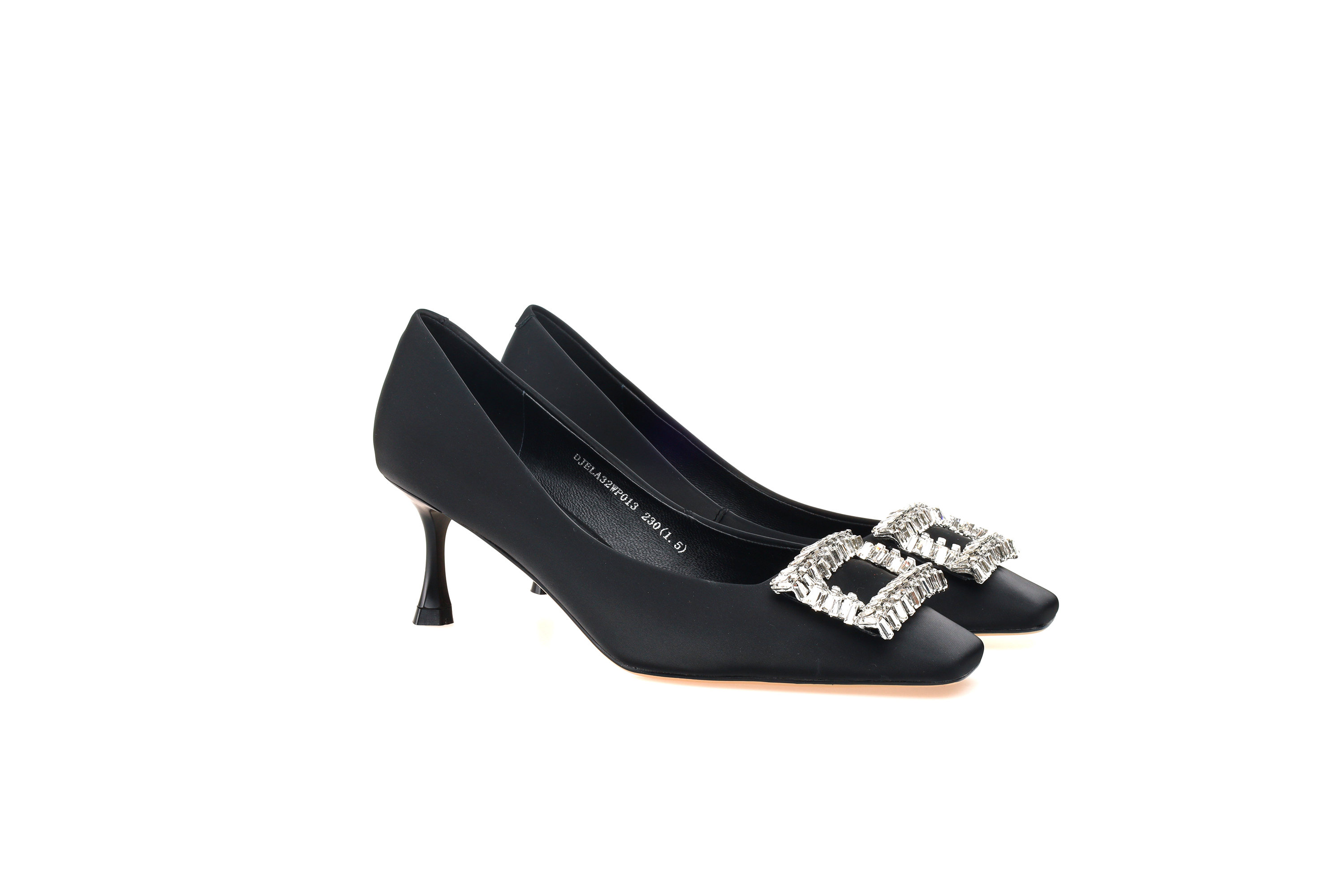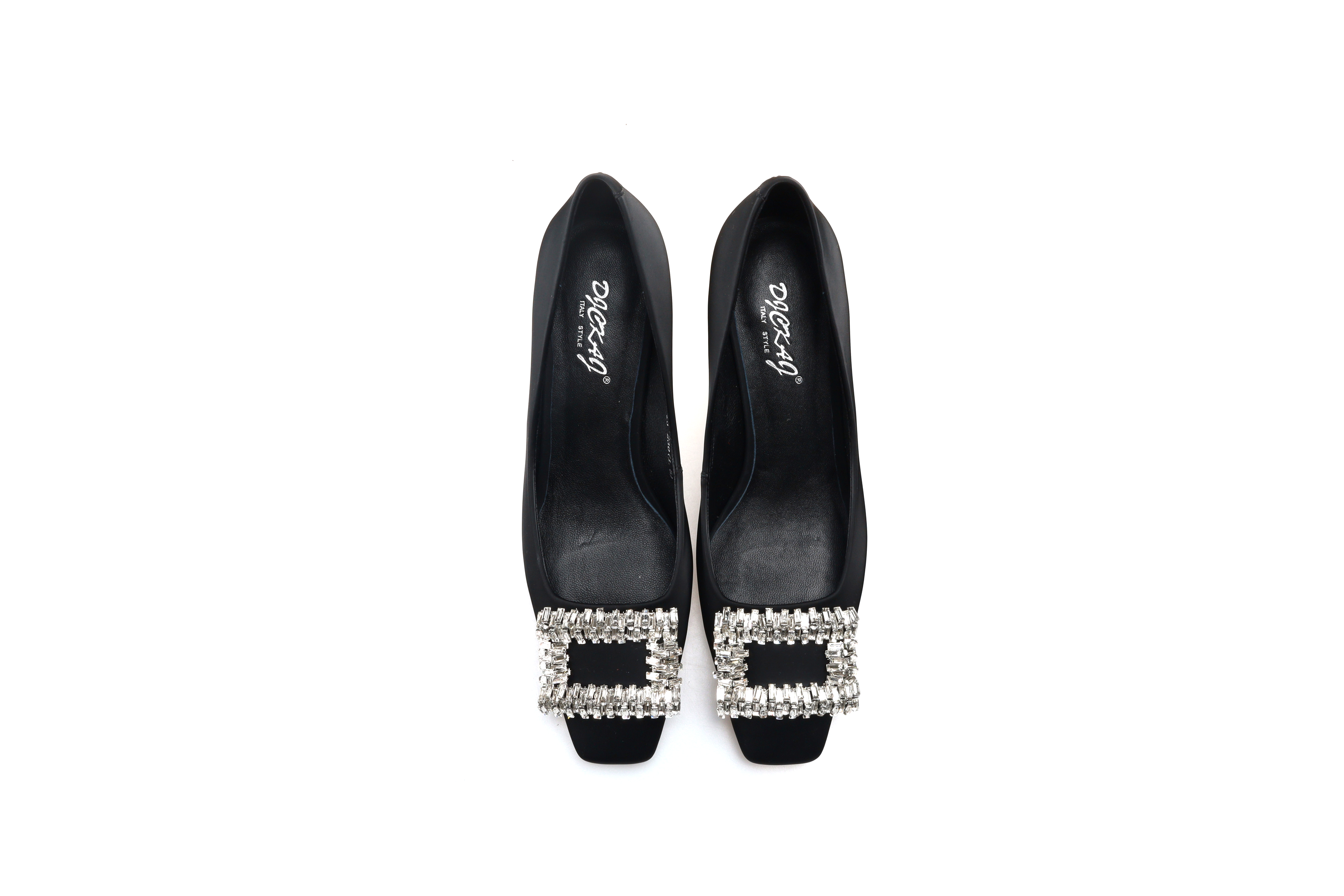 豪麟名鞋奥莱迪嘉女鞋皮鞋丝绸牛皮革DJELA32WP013黑色 原价1960元