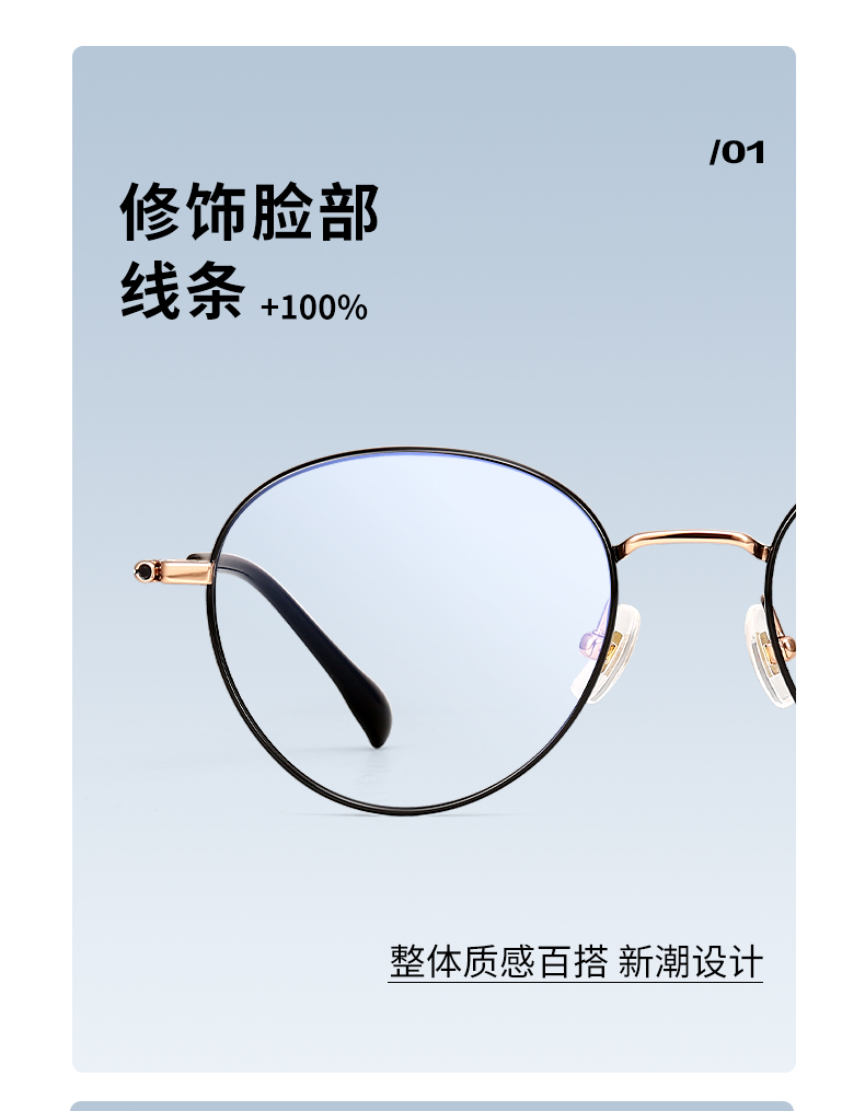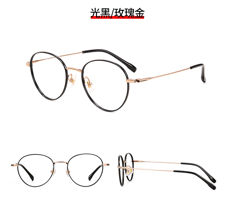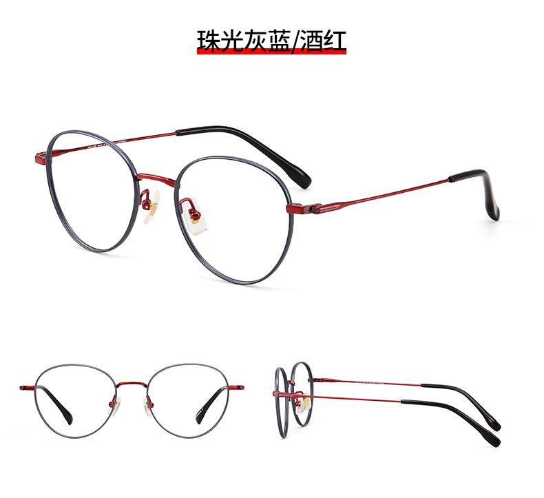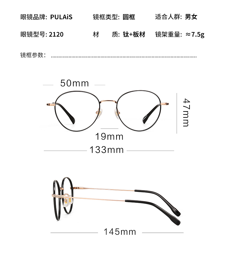 普莱斯眼镜光学镜框2120 复古圆框修饰脸部 钛+板材拼接 男女同款 三色可选