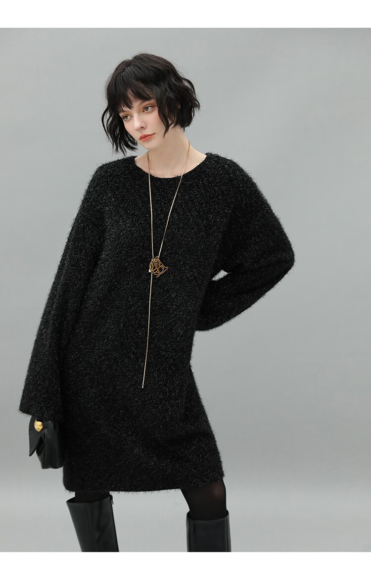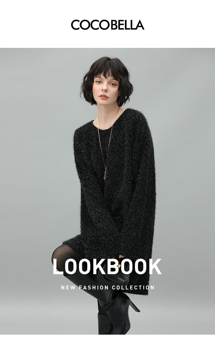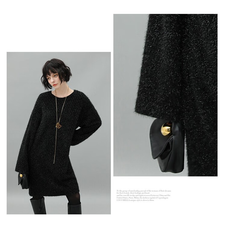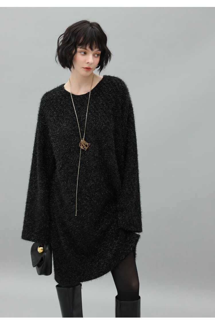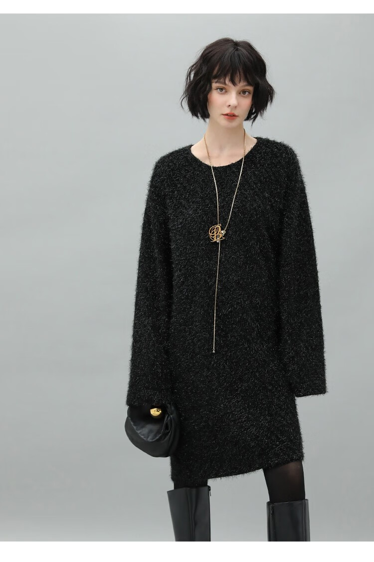 【秋冬特惠】COCOBELLA质感亮丝雪尼尔针织连衣裙女宽松粗针毛衣裙FR138