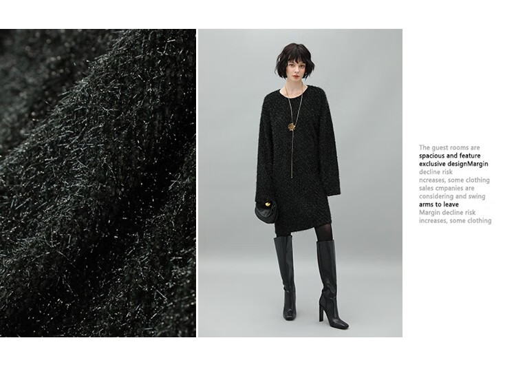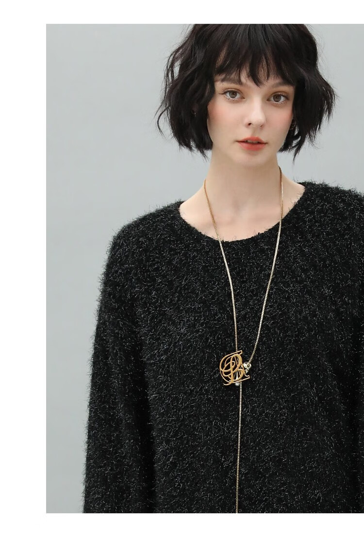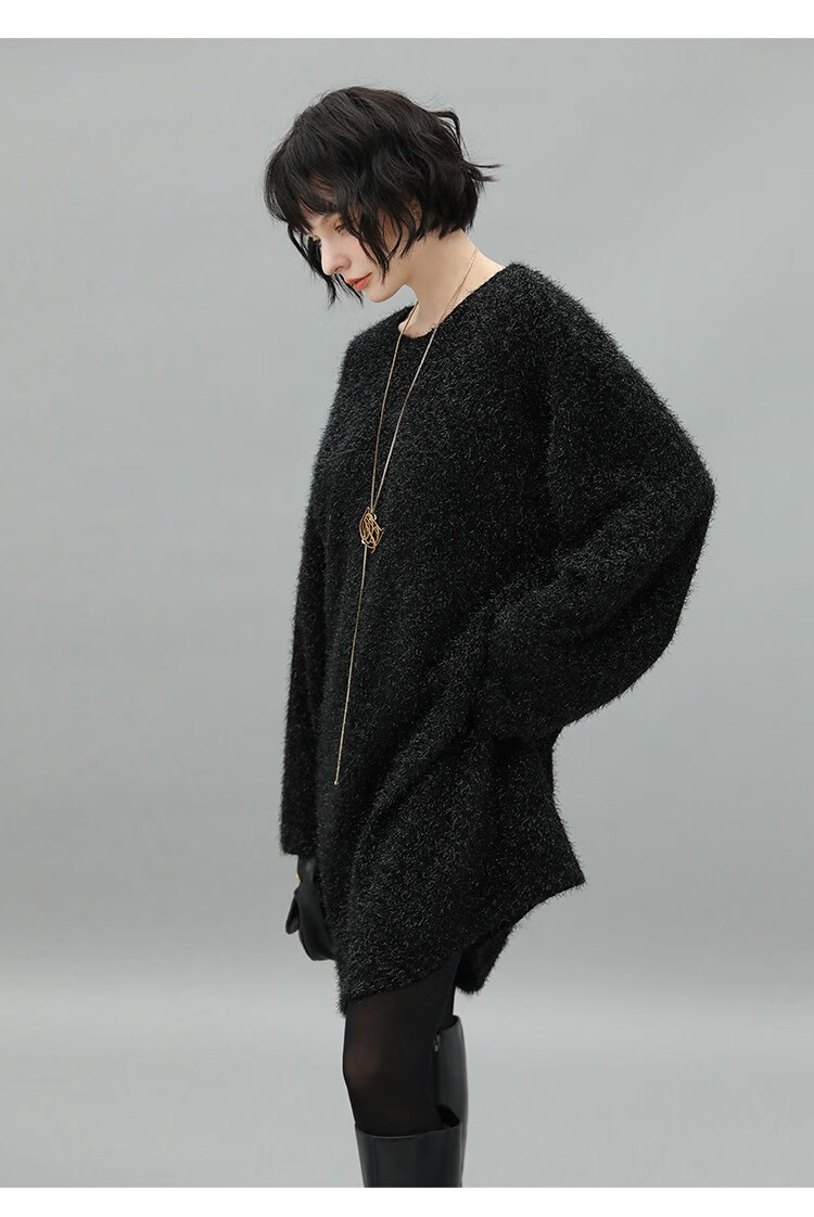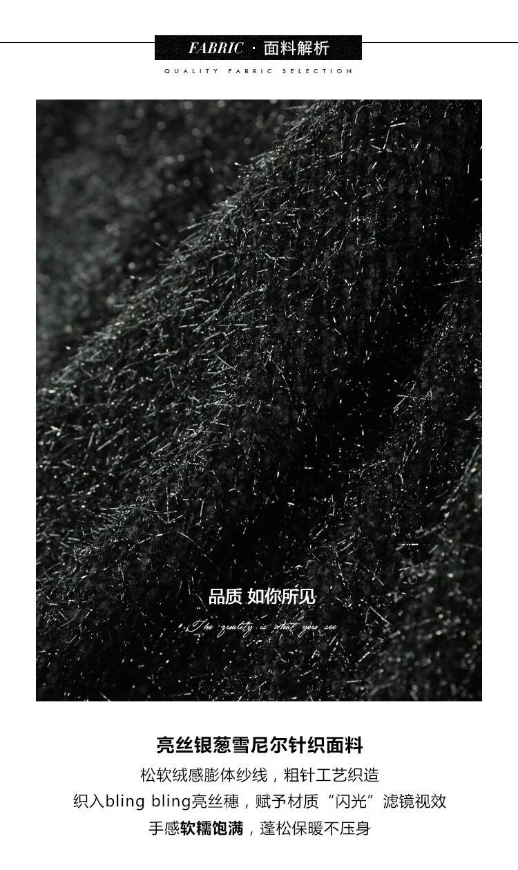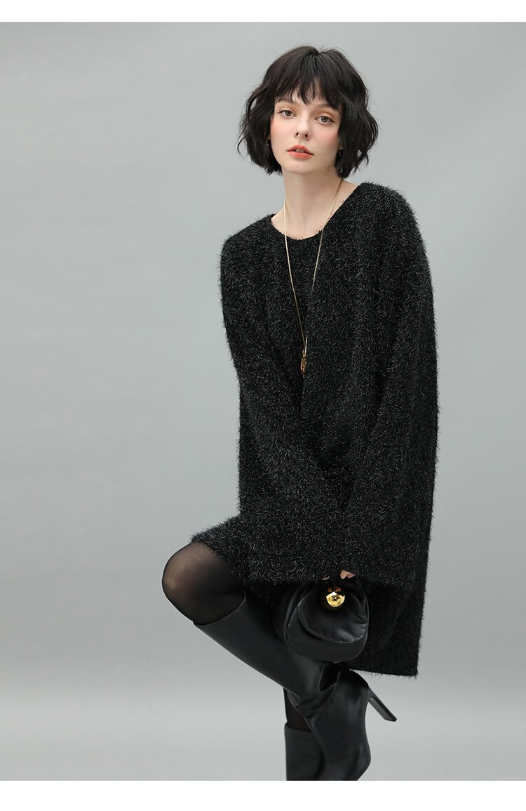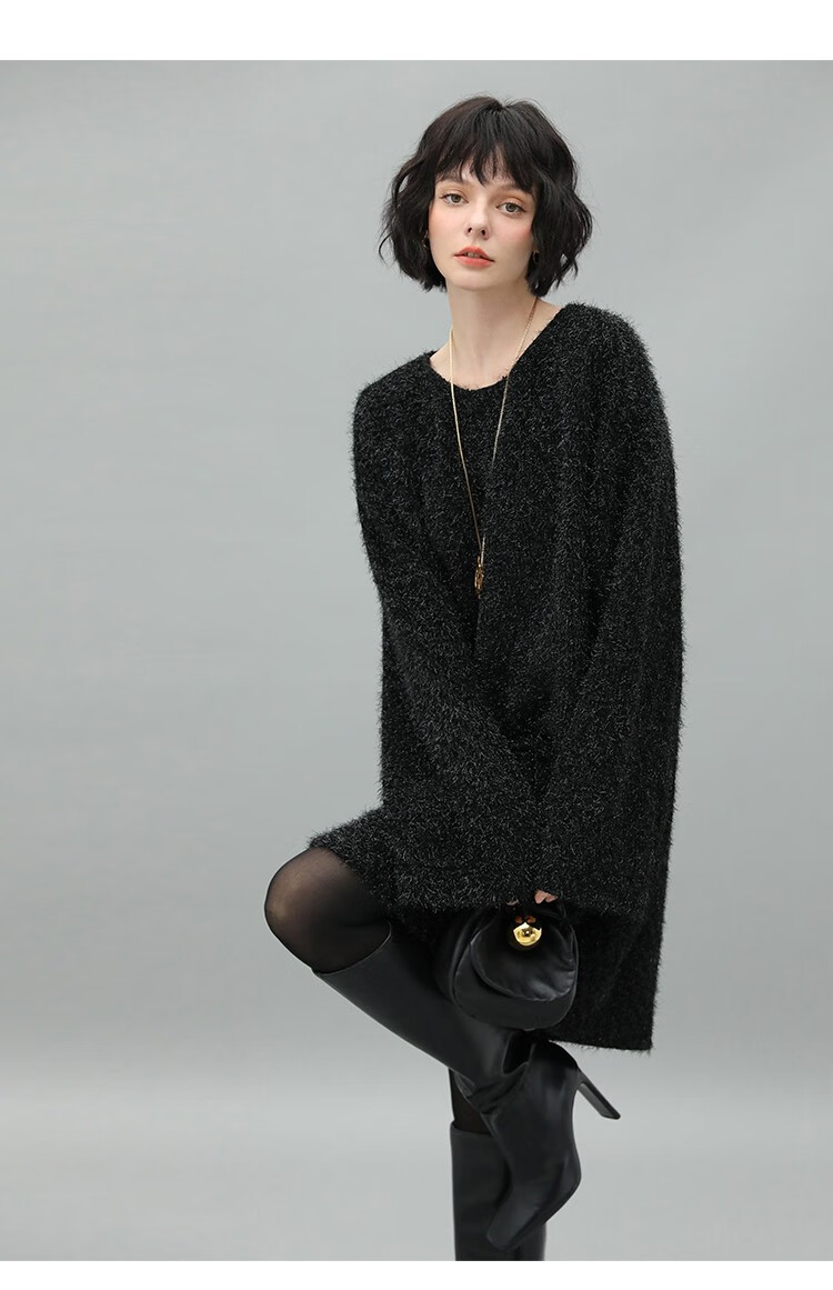 【秋冬特惠】COCOBELLA质感亮丝雪尼尔针织连衣裙女宽松粗针毛衣裙FR138