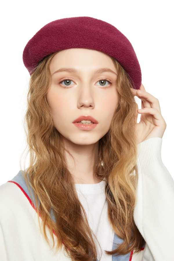 AVA 酒红色时尚贝雷帽 8265