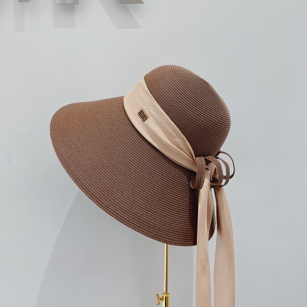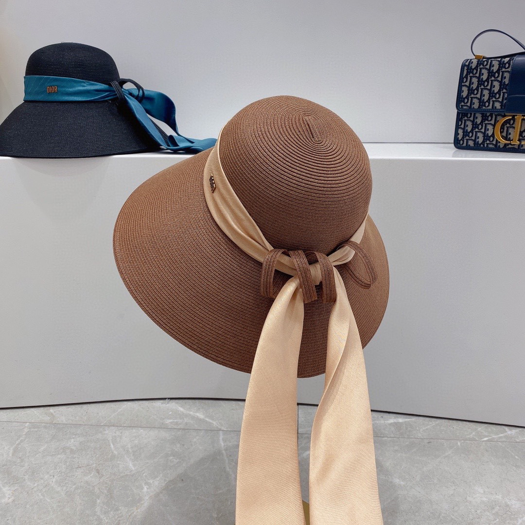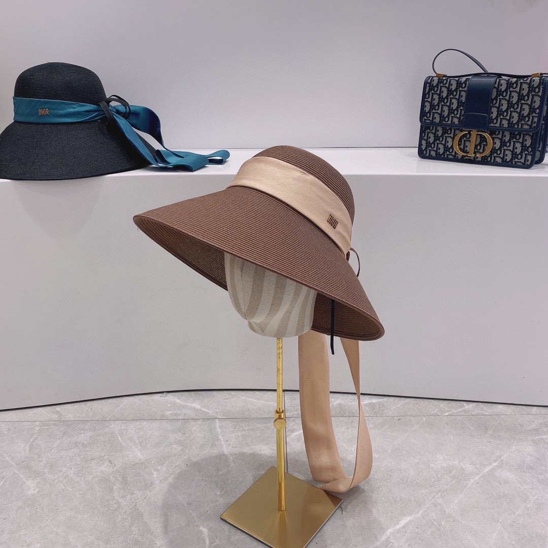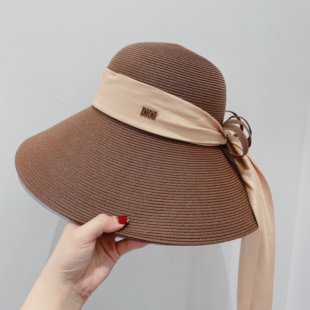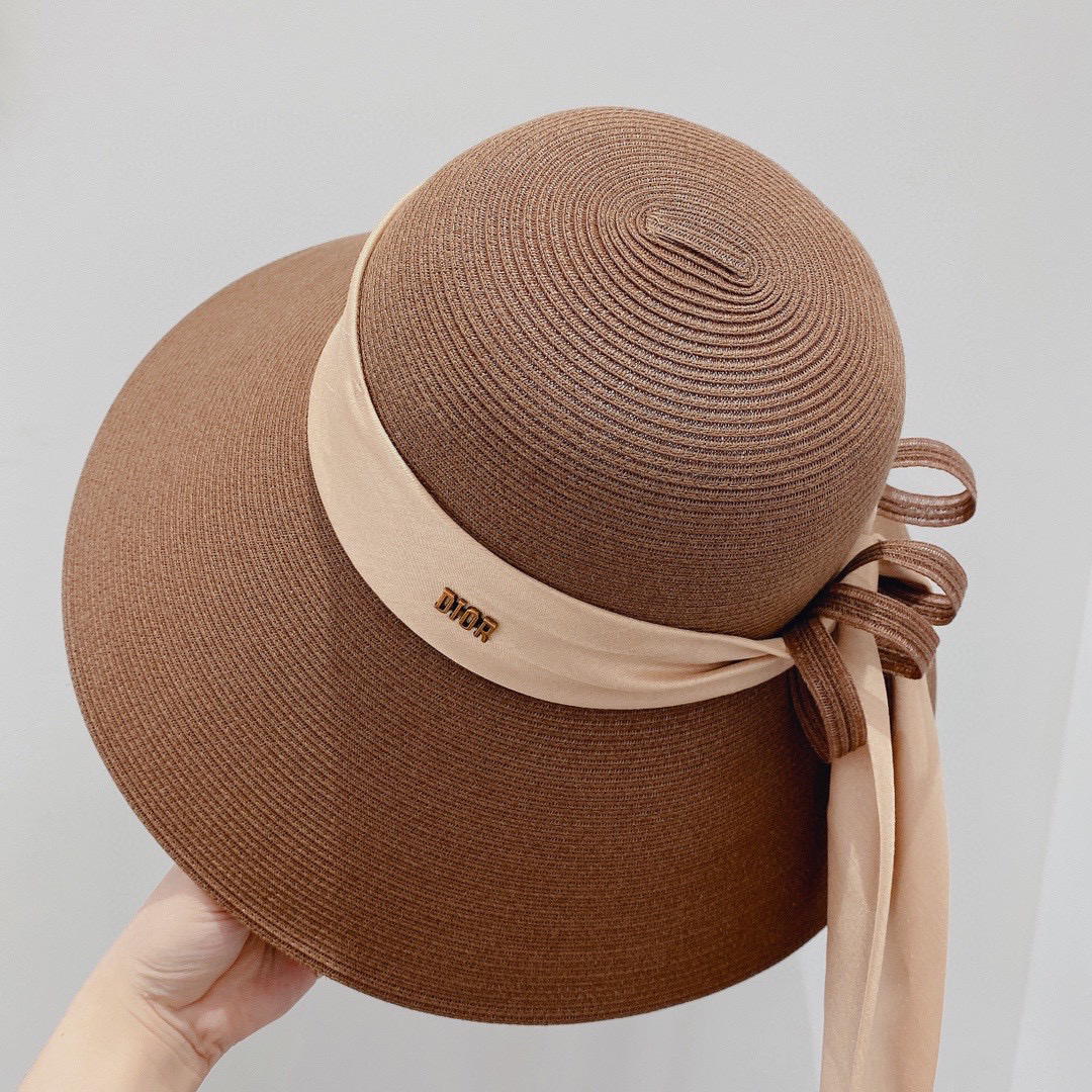 D!or春夏款PP草布遮阳帽太阳帽-咖色