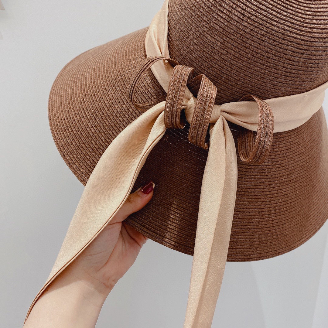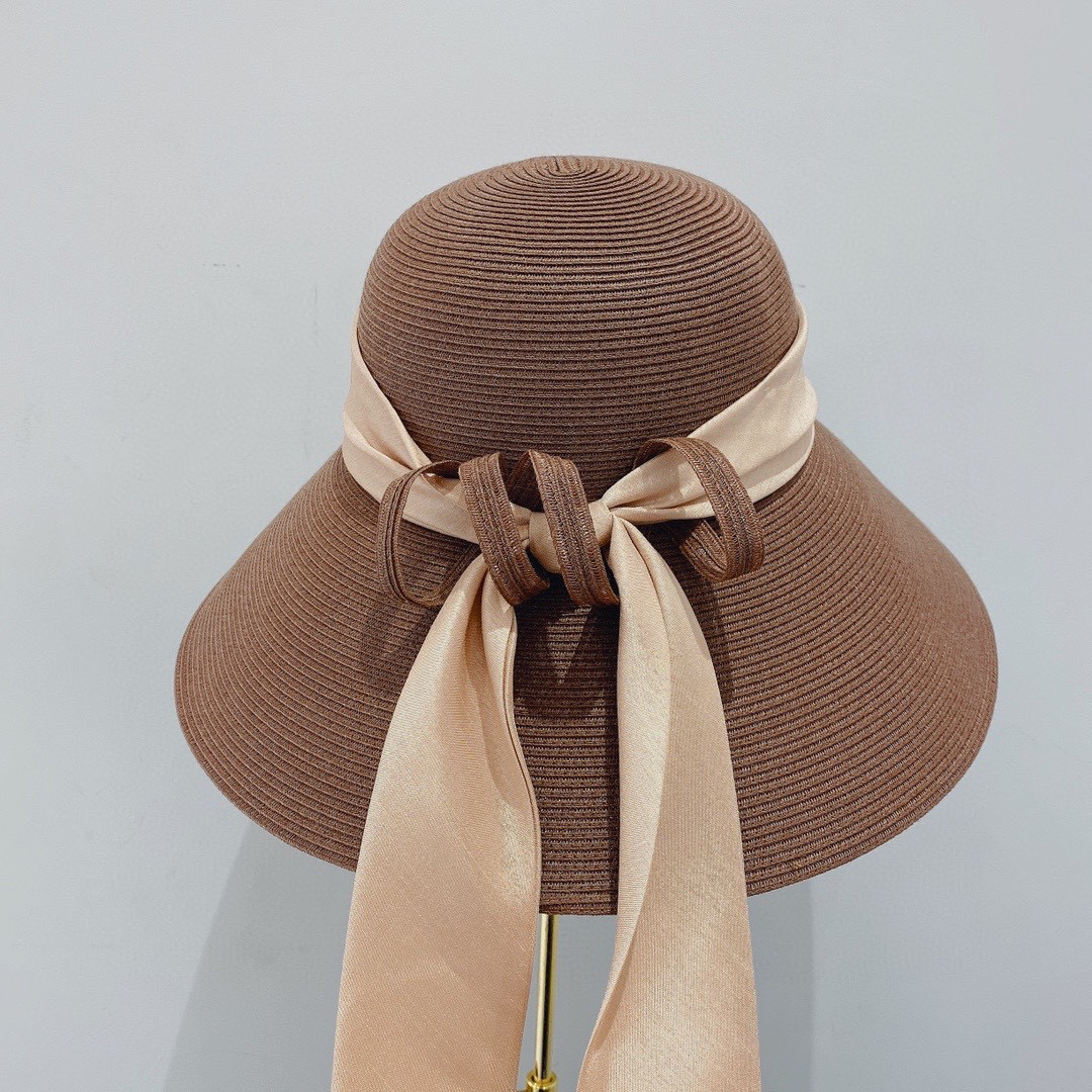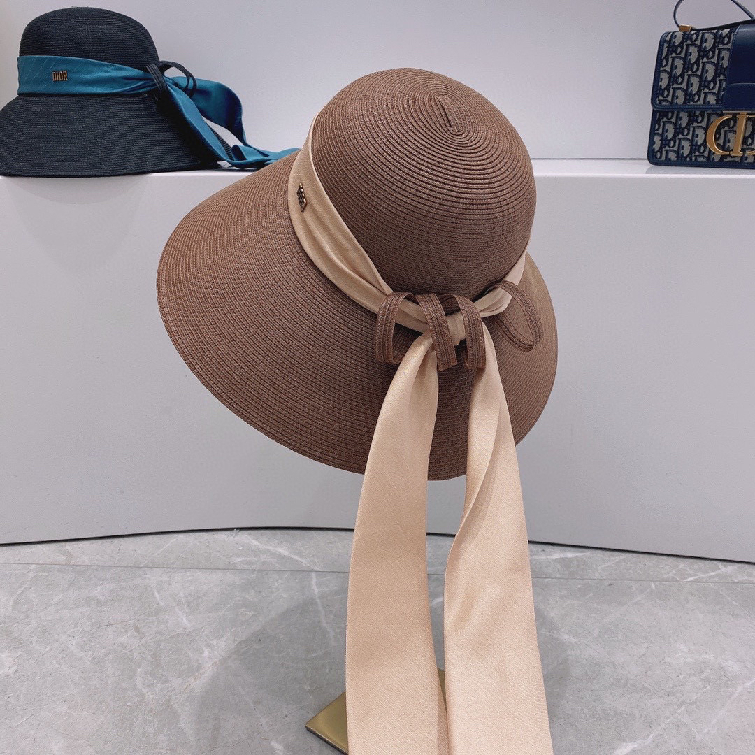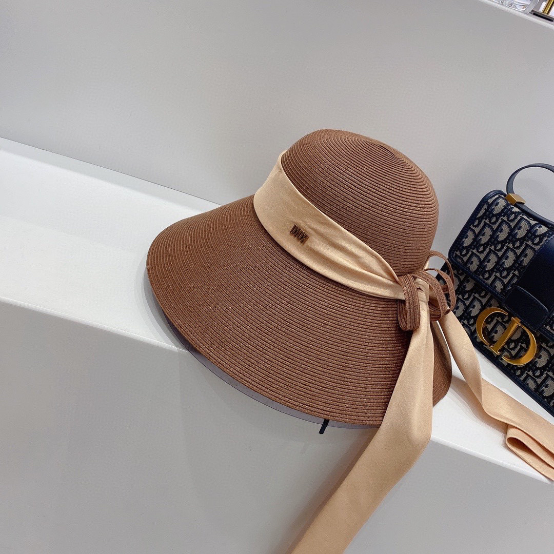 D!or春夏款PP草布遮阳帽太阳帽,台湾PP 草超轻材质,高级麻棉手工蝴蝶结,轻盈透气可折叠,携带方便,雅致大气,出游必备单品