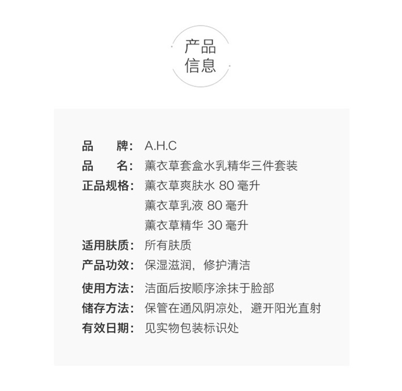 AHC 薰衣草水乳精华三件套 保湿控油收毛孔