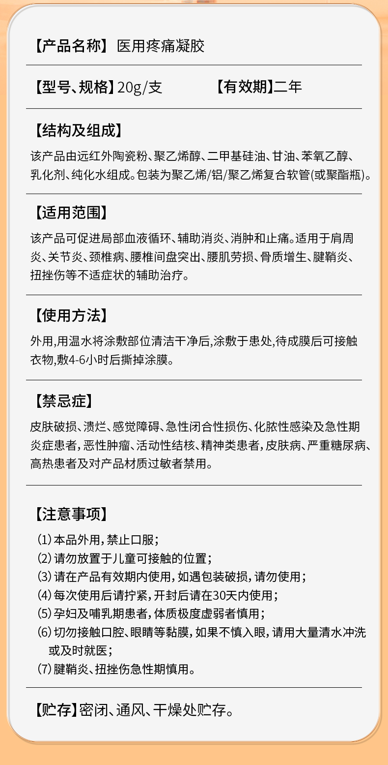 宝元堂 颈椎医用疼痛凝胶 20g /支