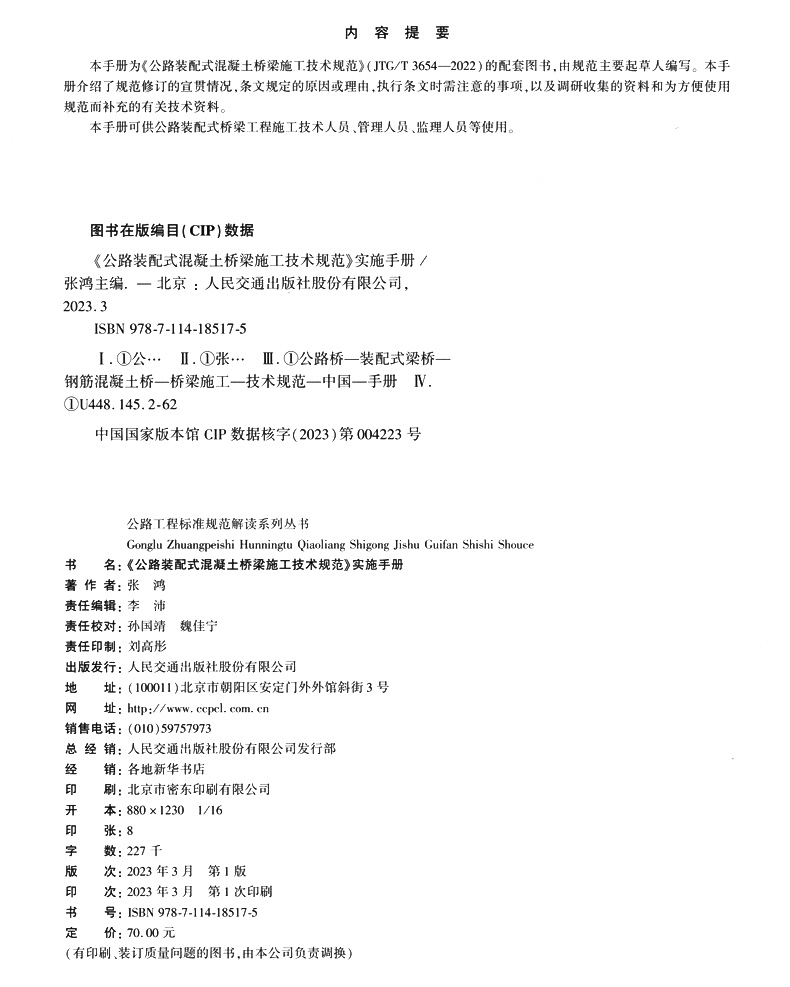 书名:《公路装配式混凝土桥梁施工技术规范》实施手册
