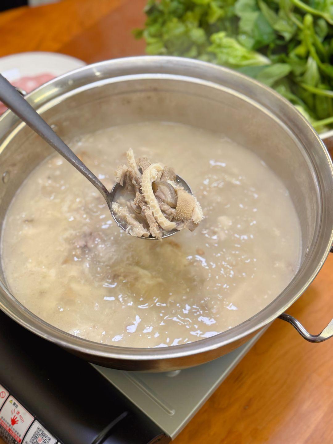 而且汤是用原骨大火慢炖 8 小时熬出来的,没加任何额外调料,只靠食材本身的鲜味,汤乳白醇香,鲜而不膻、香而不腻,还结合了简阳羊汤的香气,喝一口浑身都暖透了。