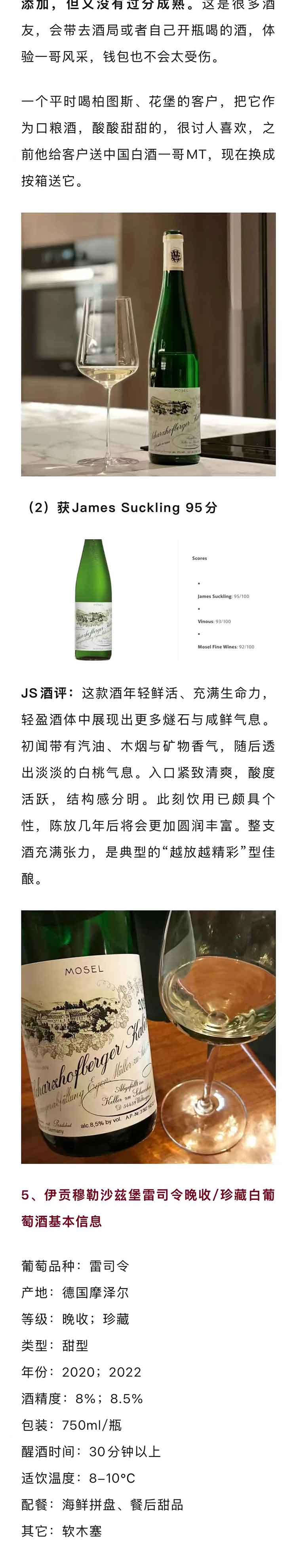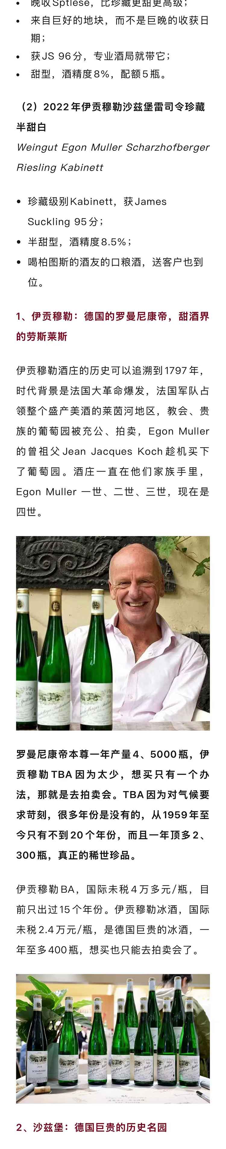 【世界甜酒一哥】德国伊贡穆勒沙兹堡雷司令2020/2022年珍藏半甜白/2020年晚收甜白