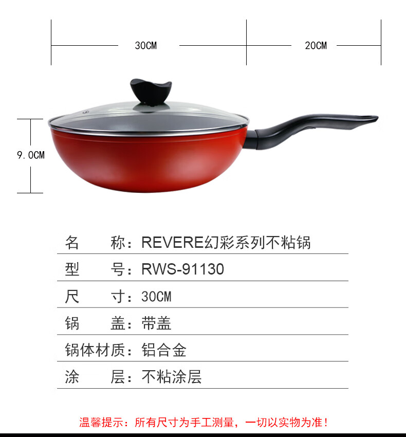 【小家电】Revere 幻彩系列30CM不粘炒锅RWS-91130/YK HF