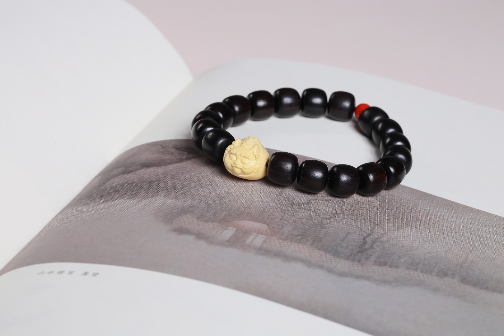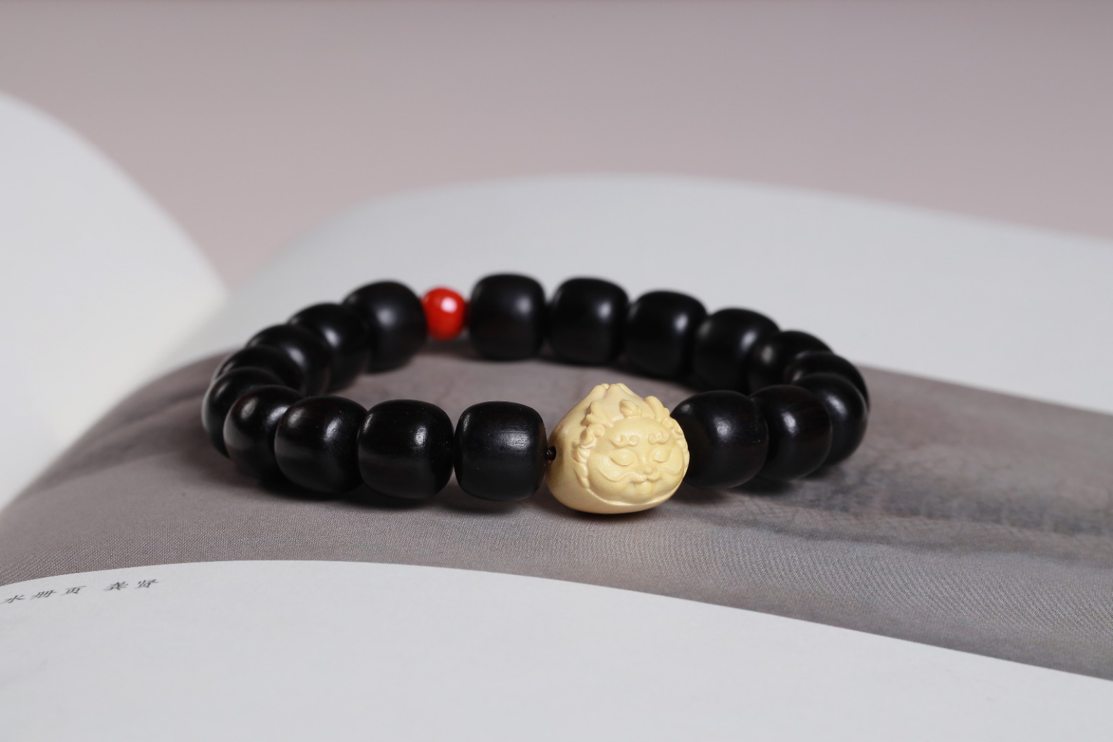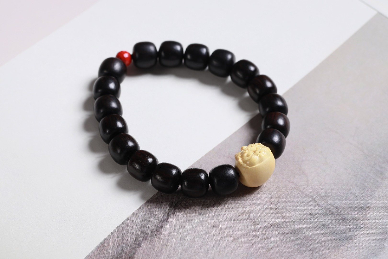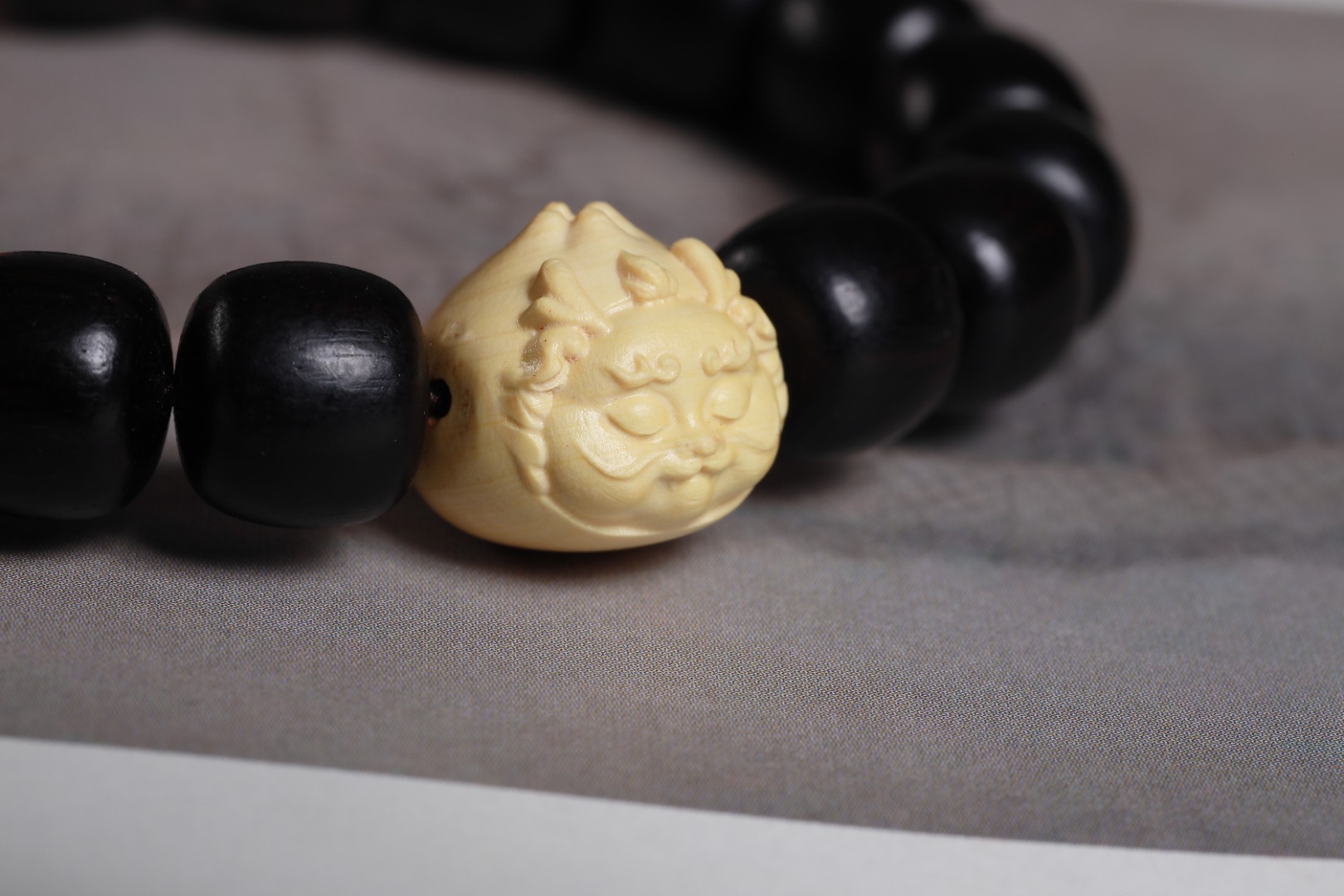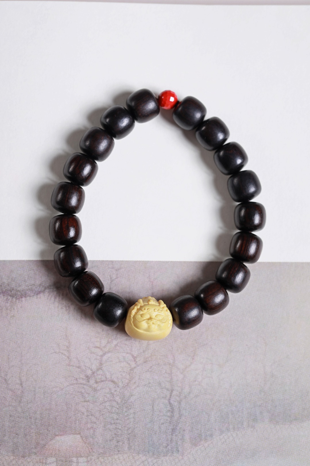 【配件】紫光檀/黄杨木小龙包/朱砂切面珠