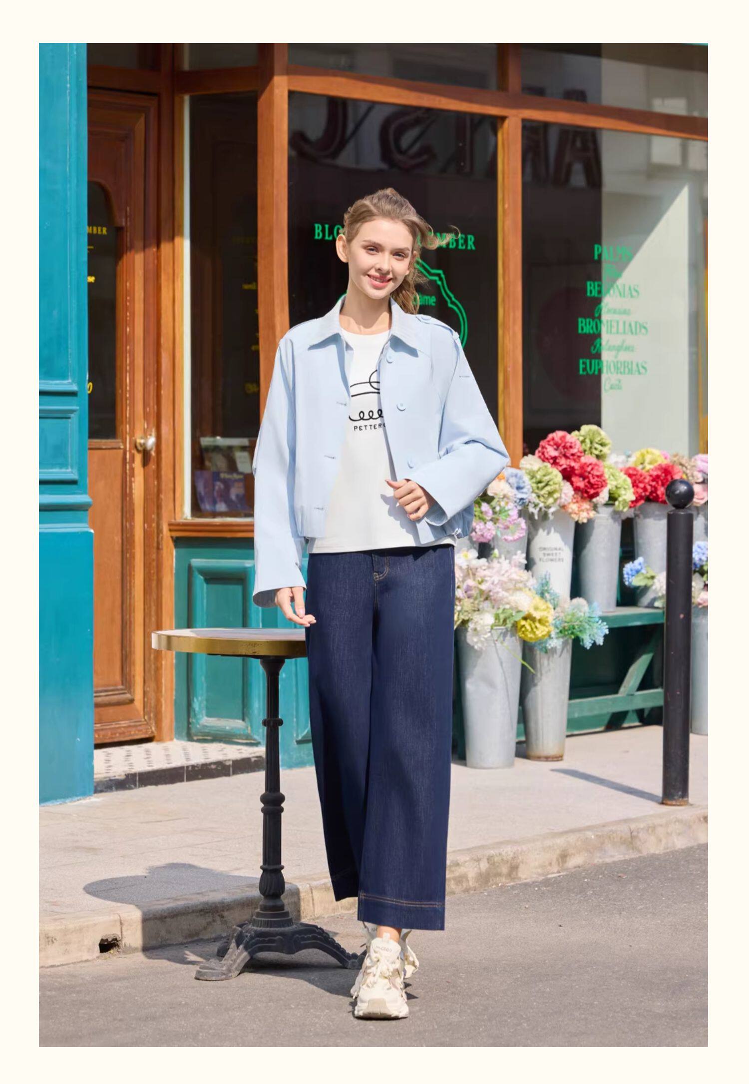 半身缘女裤 春季时尚复古丹宁蓝直筒牛仔裤261202U30120161