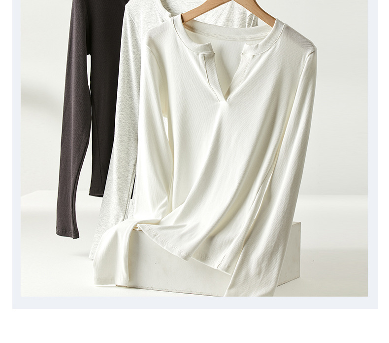 V领螺纹长袖上衣女可外穿早春秋季高级设计感内搭打底衫正肩Tt恤 商品图6