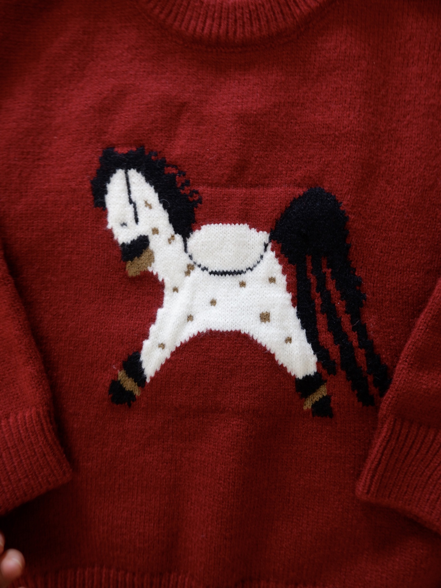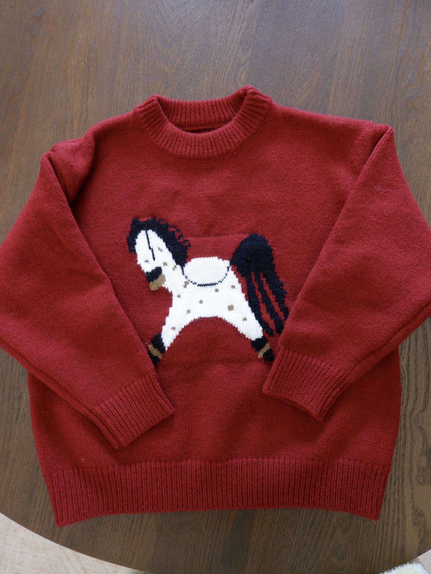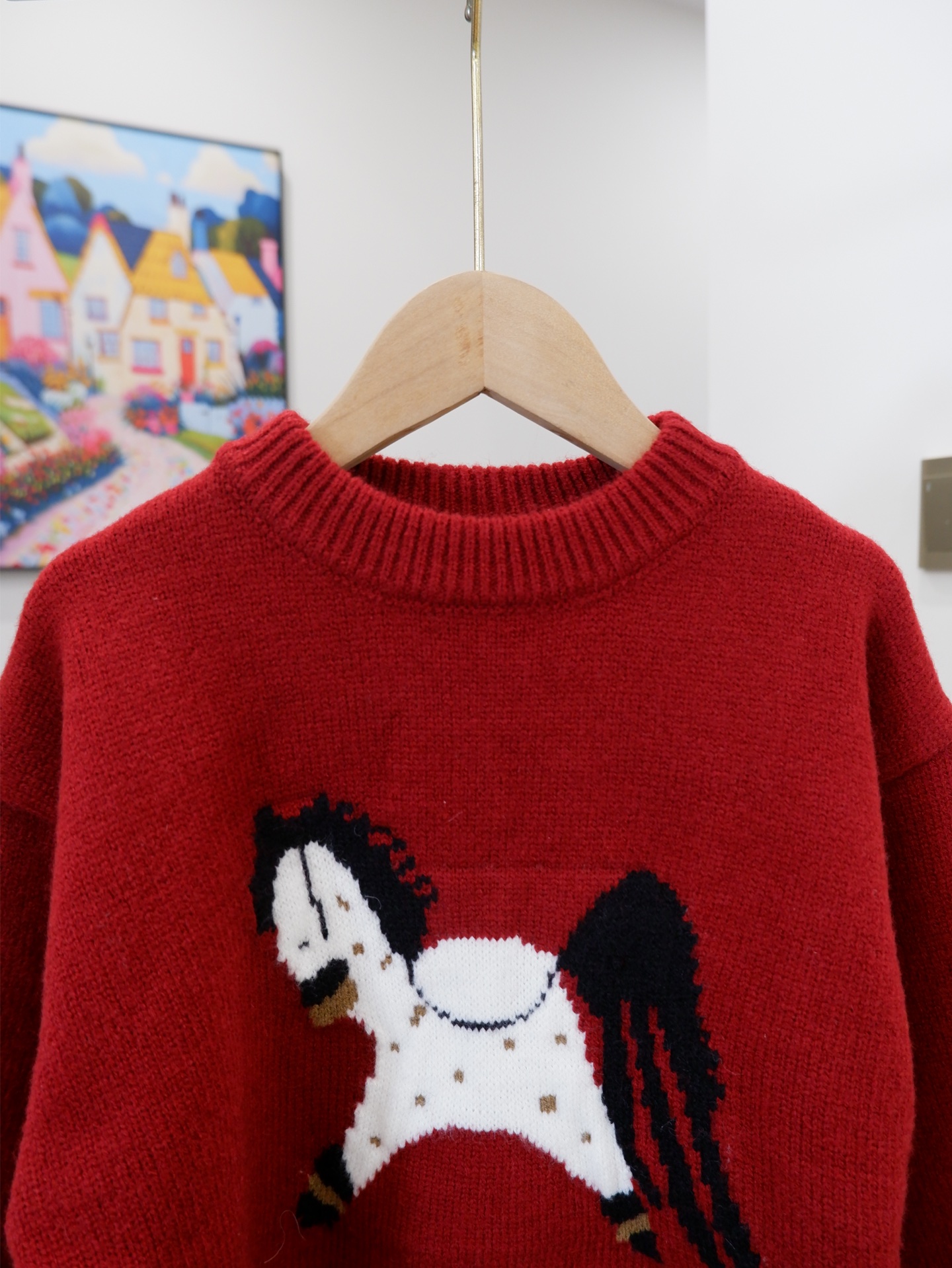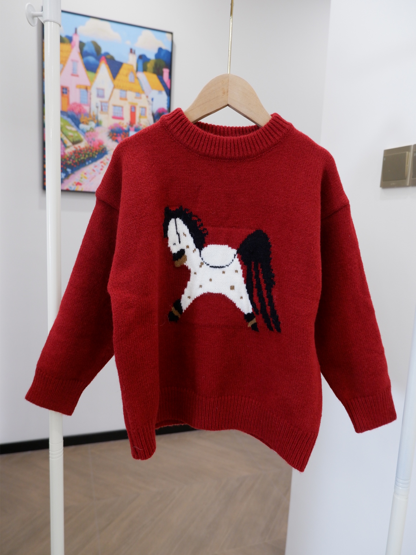 💰79元包邮,【喜慕5307】 新年战袍, 一抹开运红, 儿童小马红毛衣