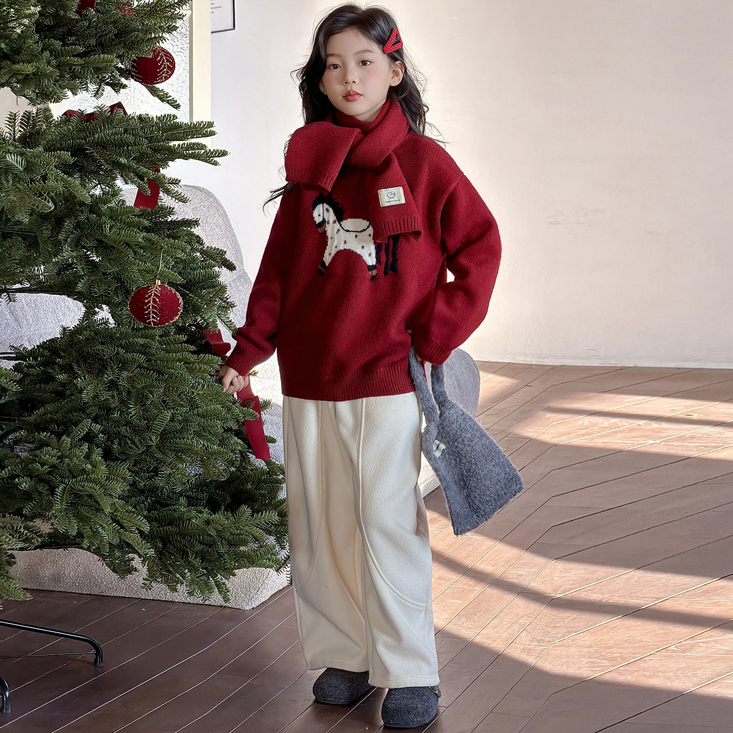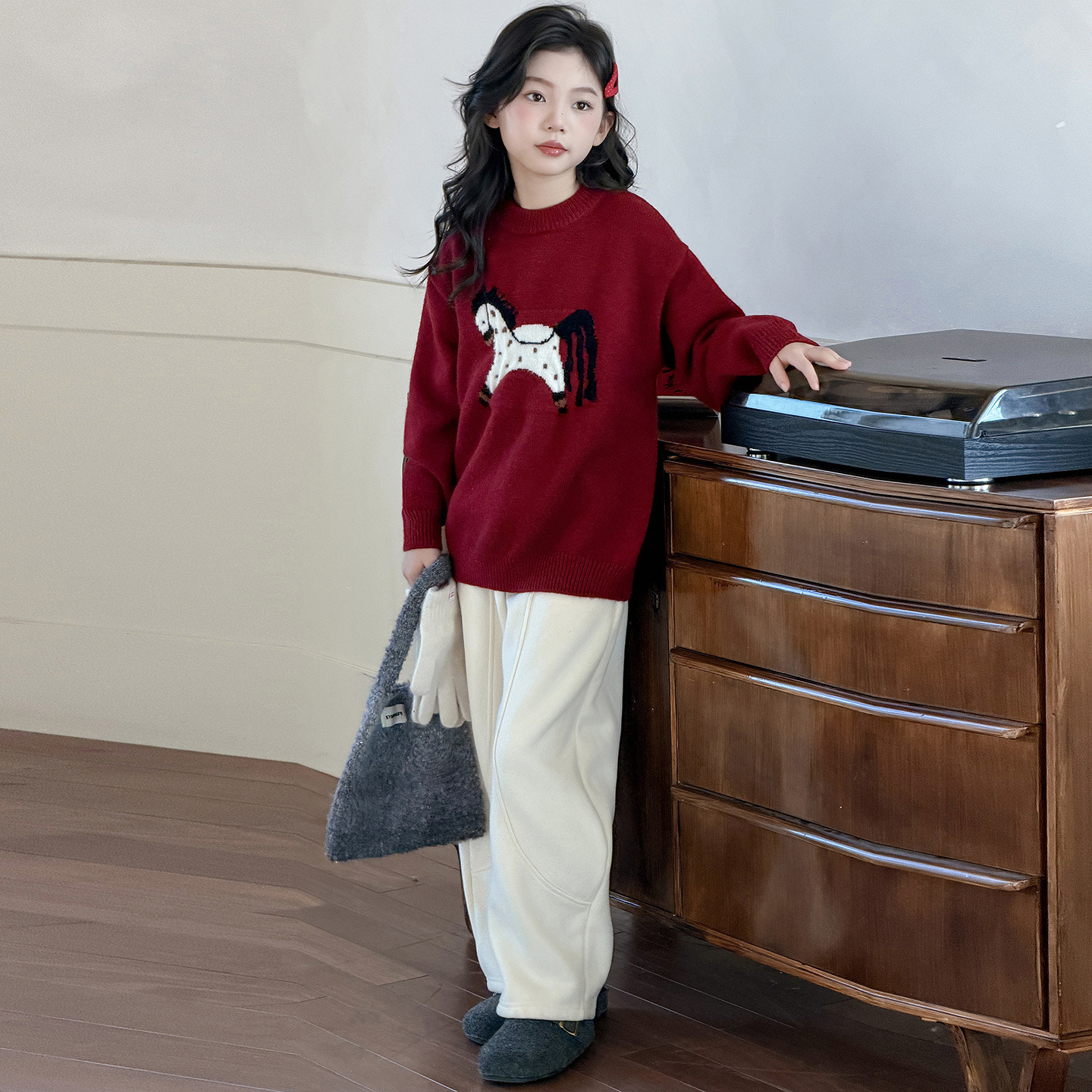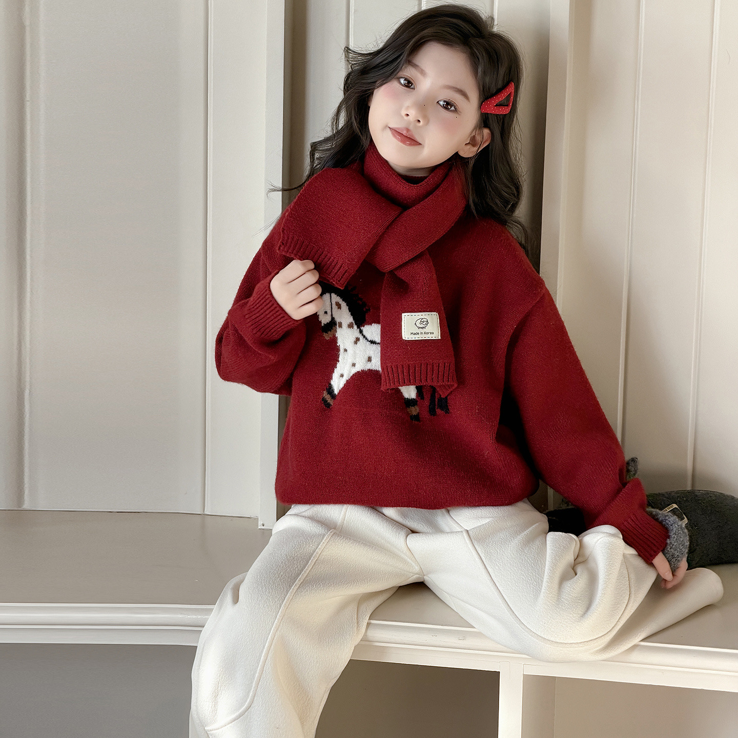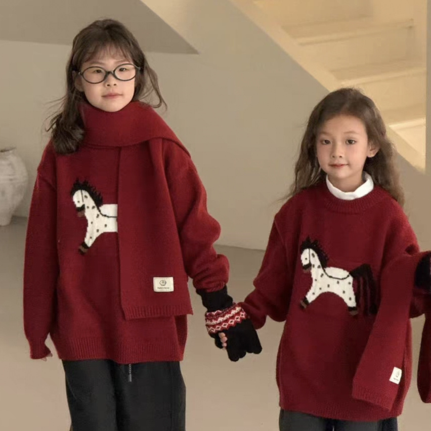 💰79元包邮,【喜慕5307】 新年战袍, 一抹开运红, 儿童小马红毛衣
