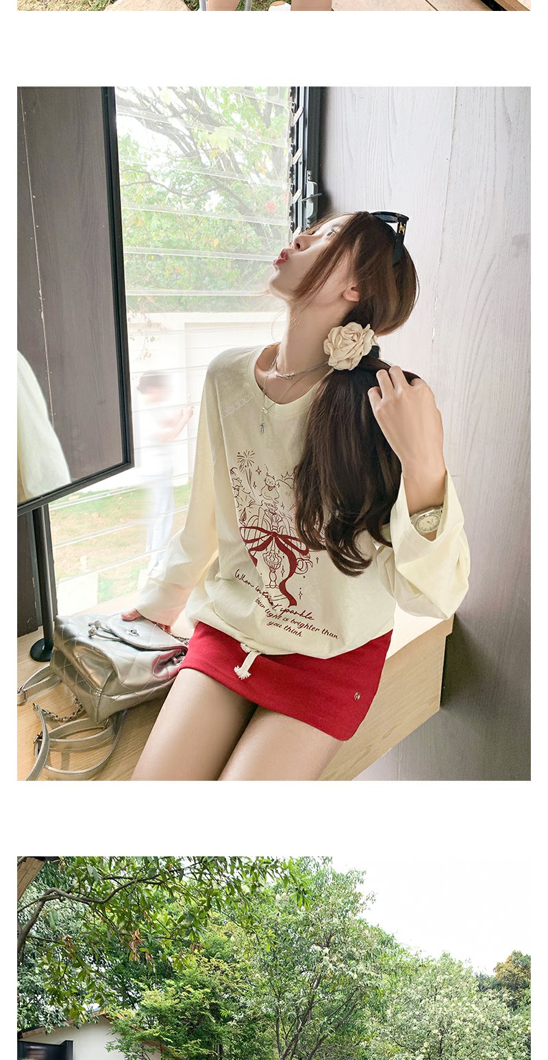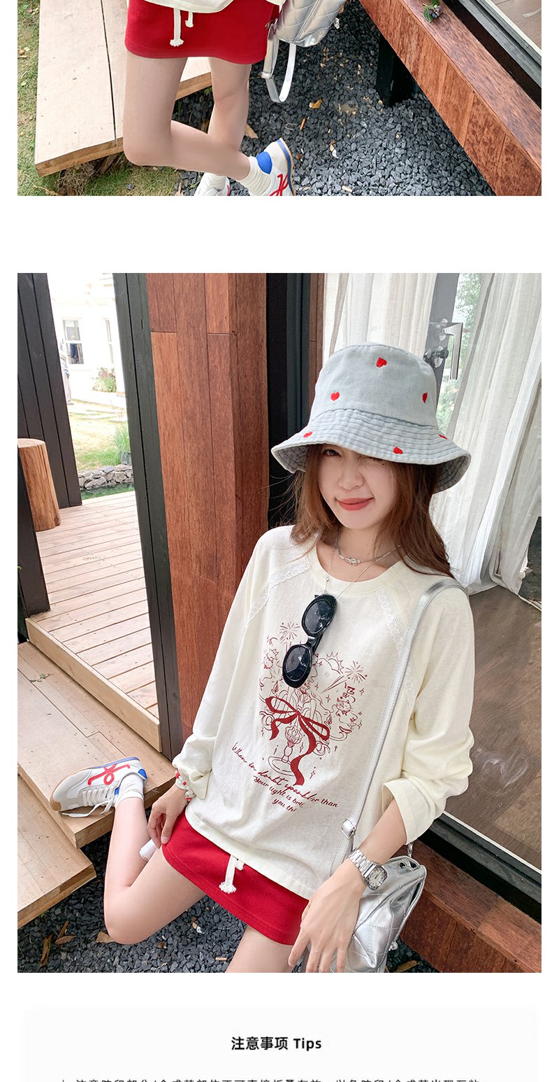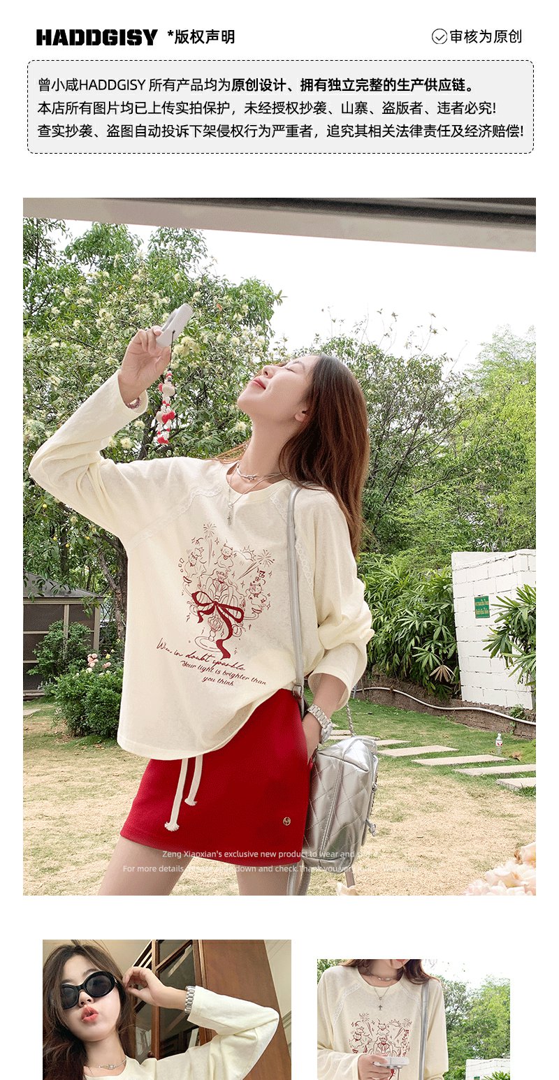 <曾小咸推荐>浅黄色红色印花宽松长袖T恤