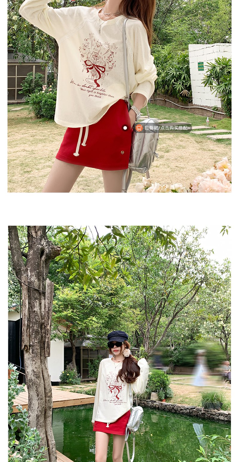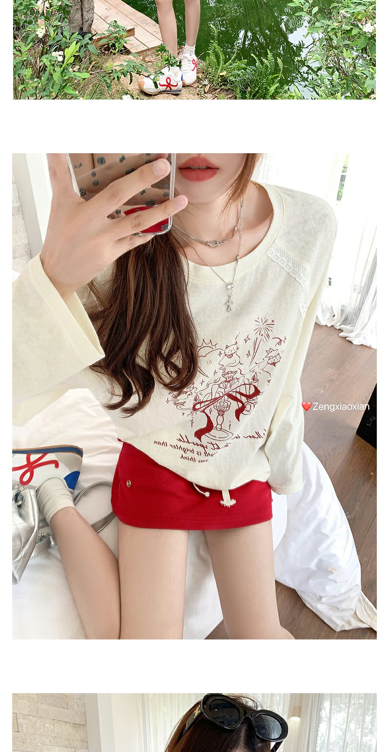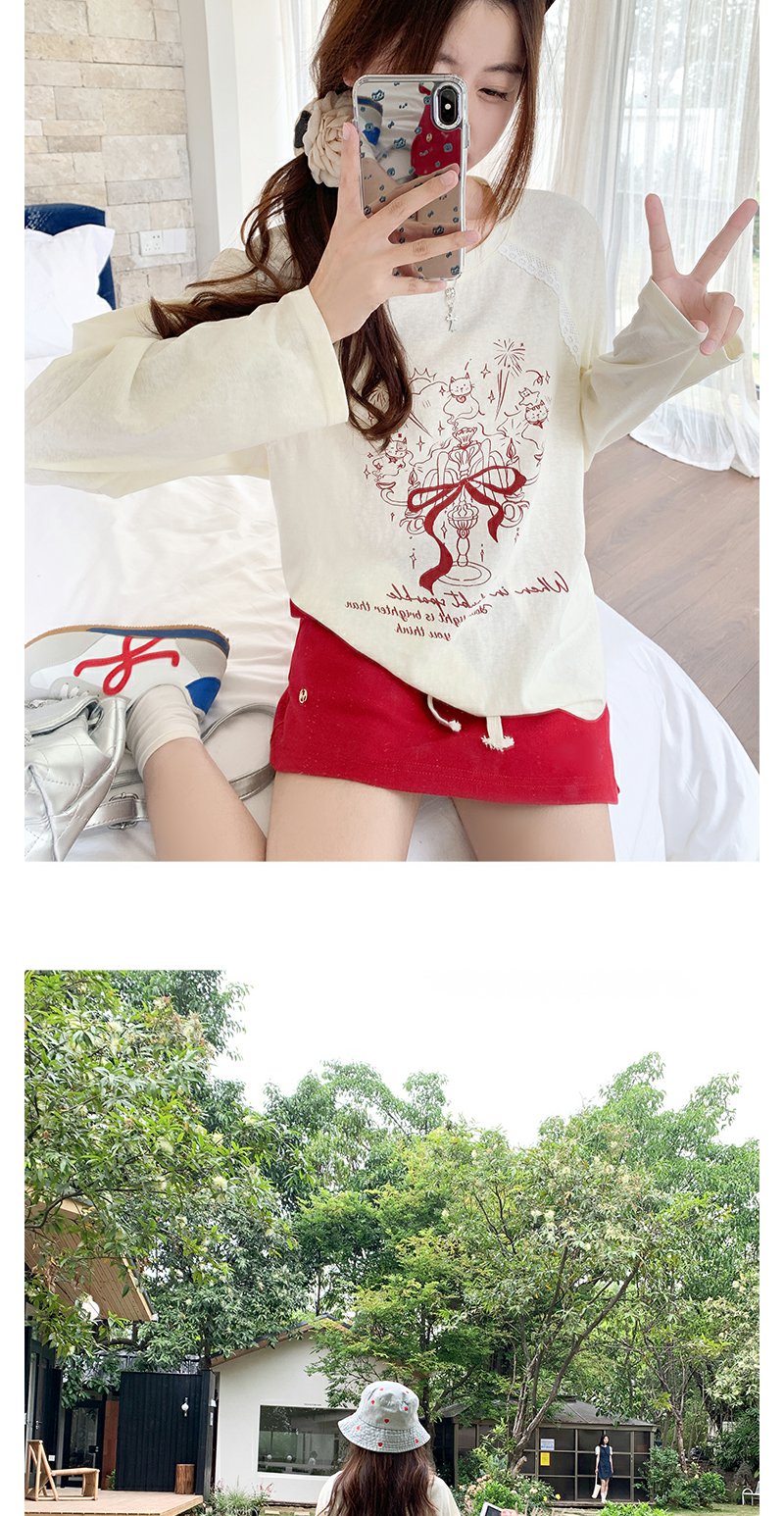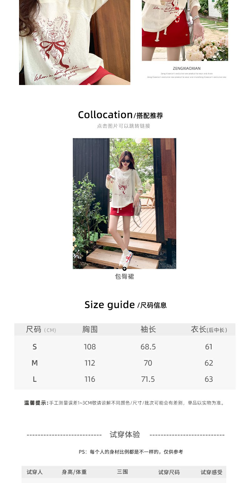 <曾小咸推荐>浅黄色红色印花宽松长袖T恤