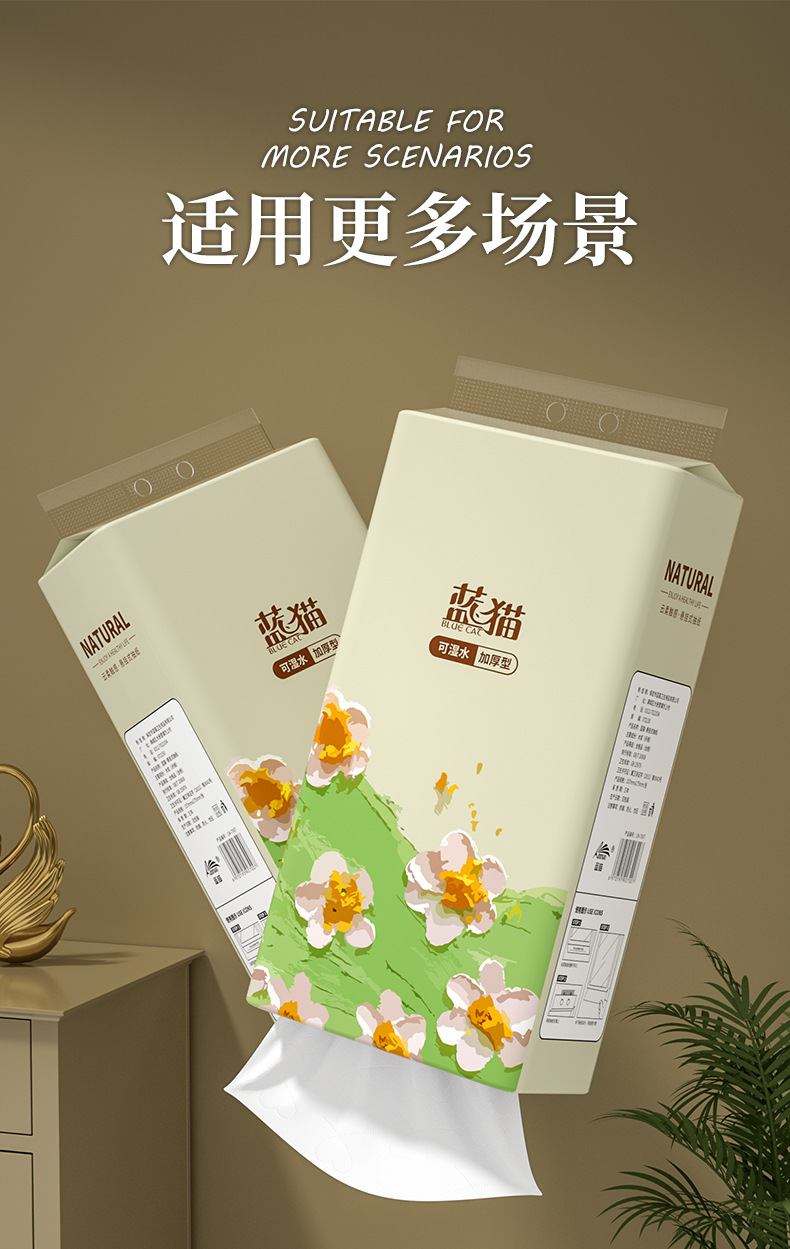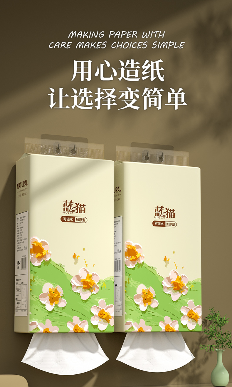 「买1送1再送挂钩!19.9到手两提」蓝猫1280张大包挂式抽纸 厕所厕纸底部抽取悬挂式卫生纸居家日用擦手纸