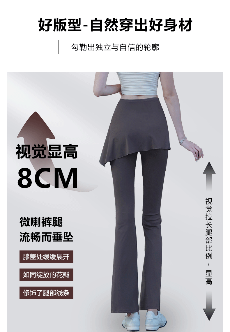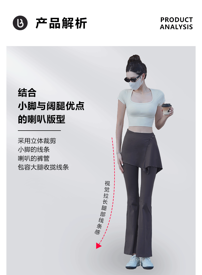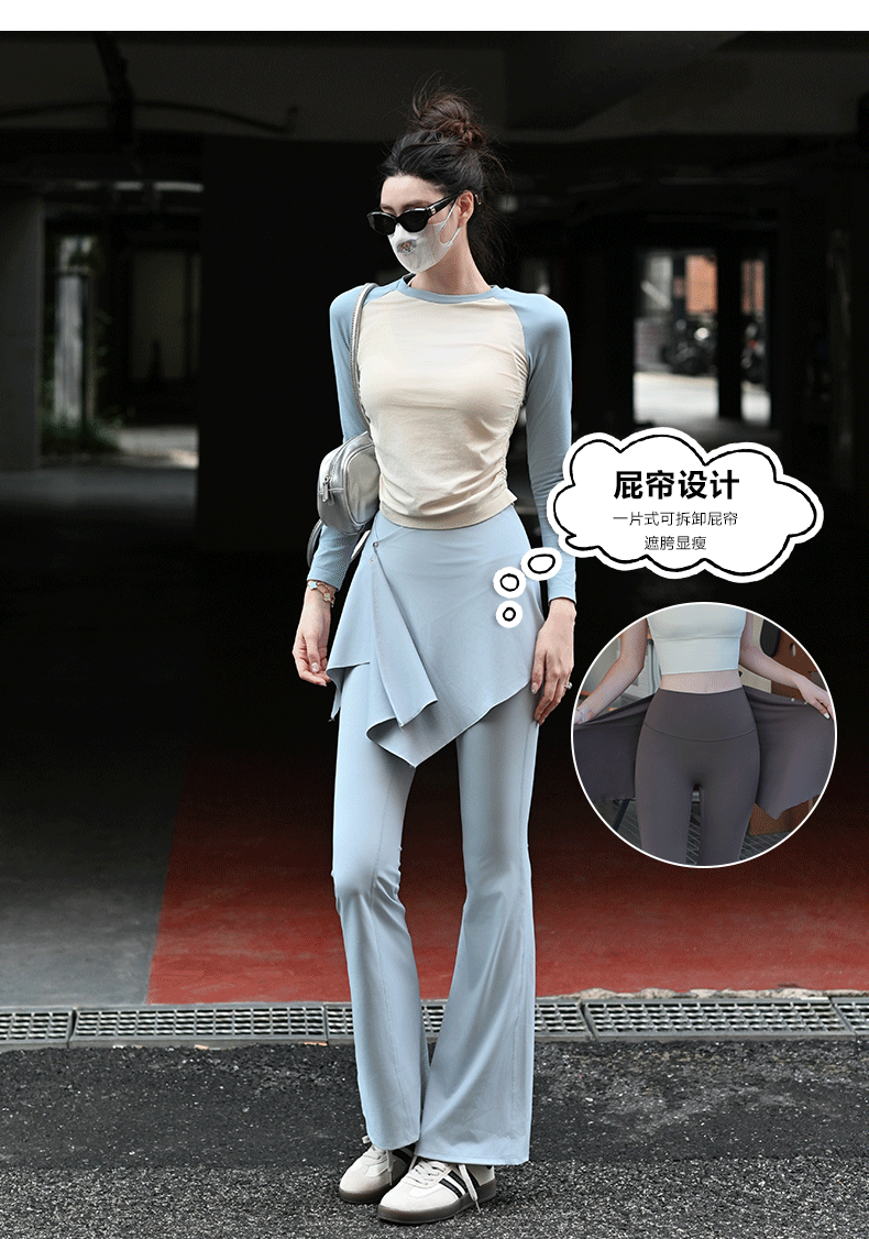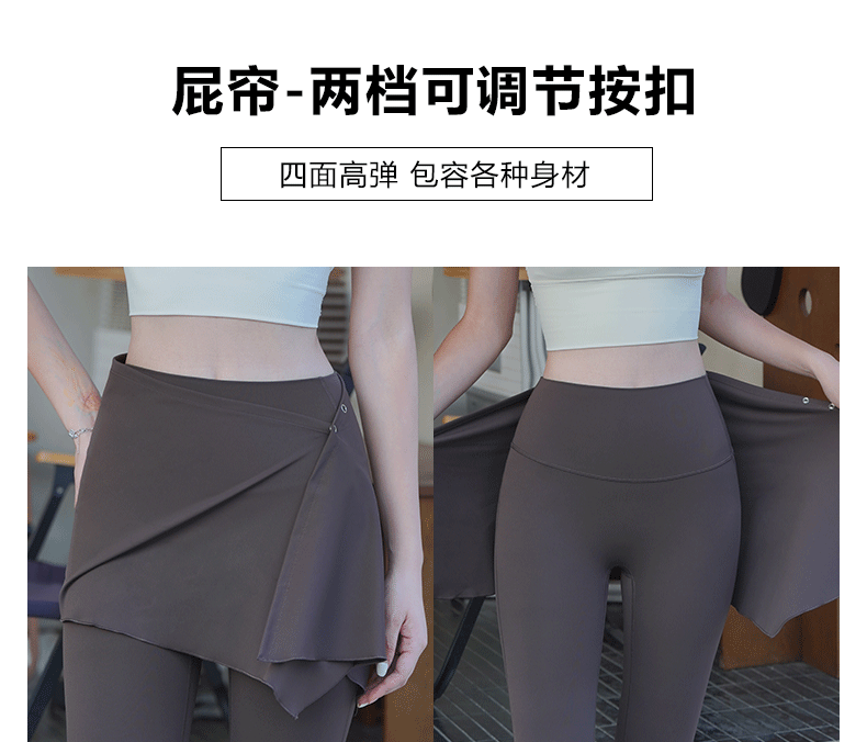 Beemen带屁帘假两件瑜伽微喇裤裙 拉提塑形运动套装 一件俩穿