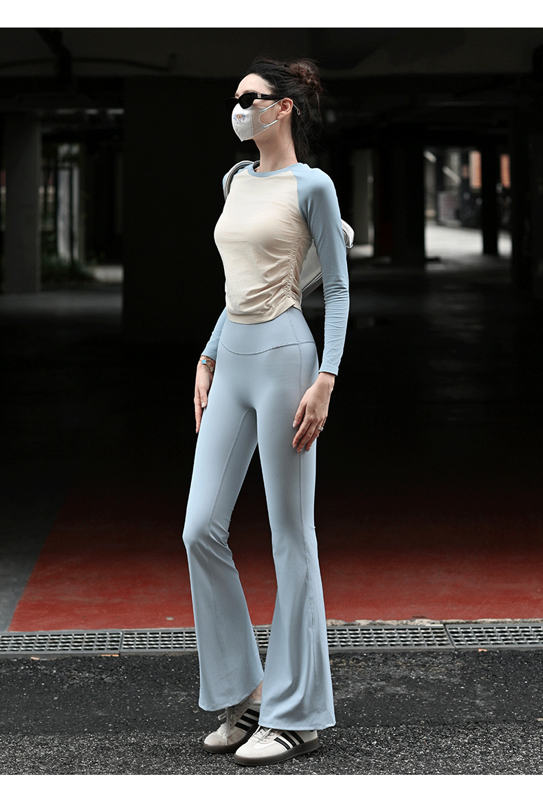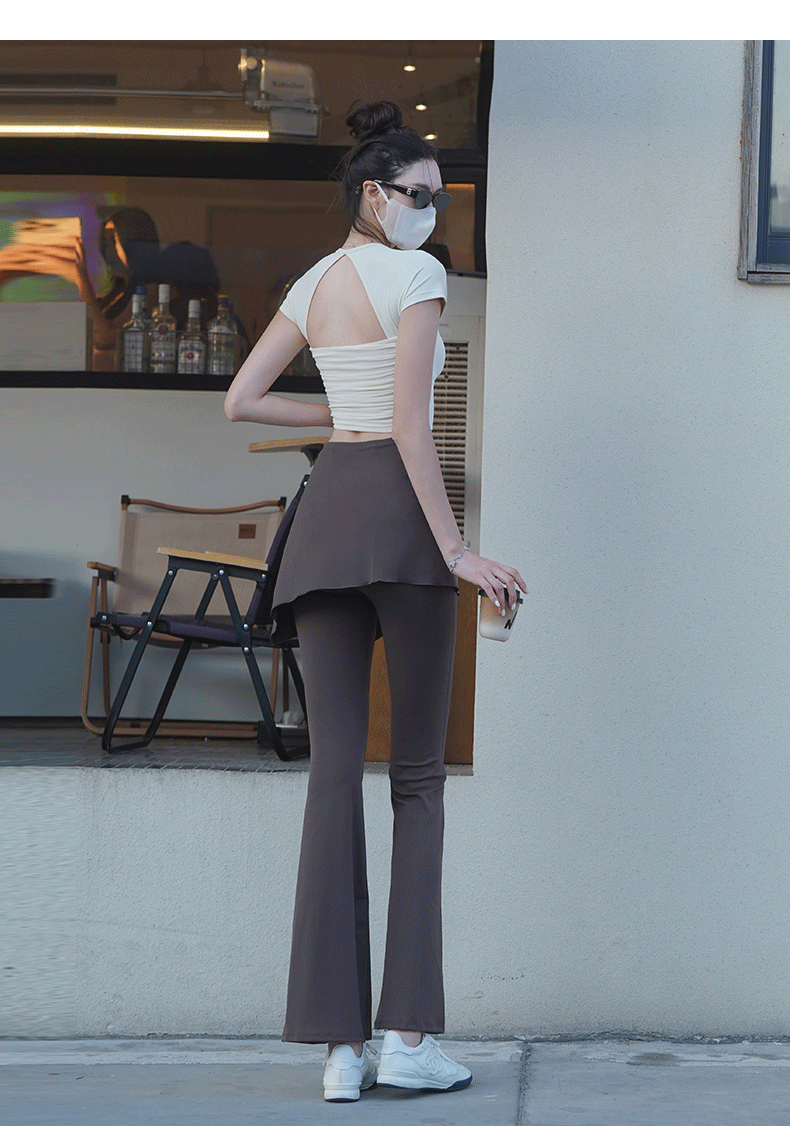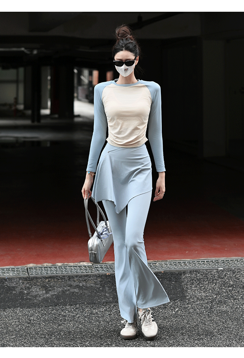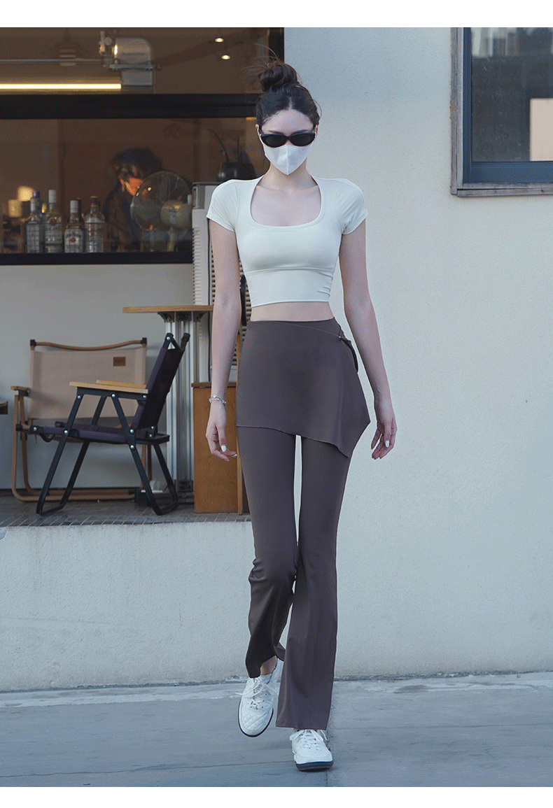 Beemen带屁帘假两件瑜伽微喇裤裙 拉提塑形运动套装 一件俩穿