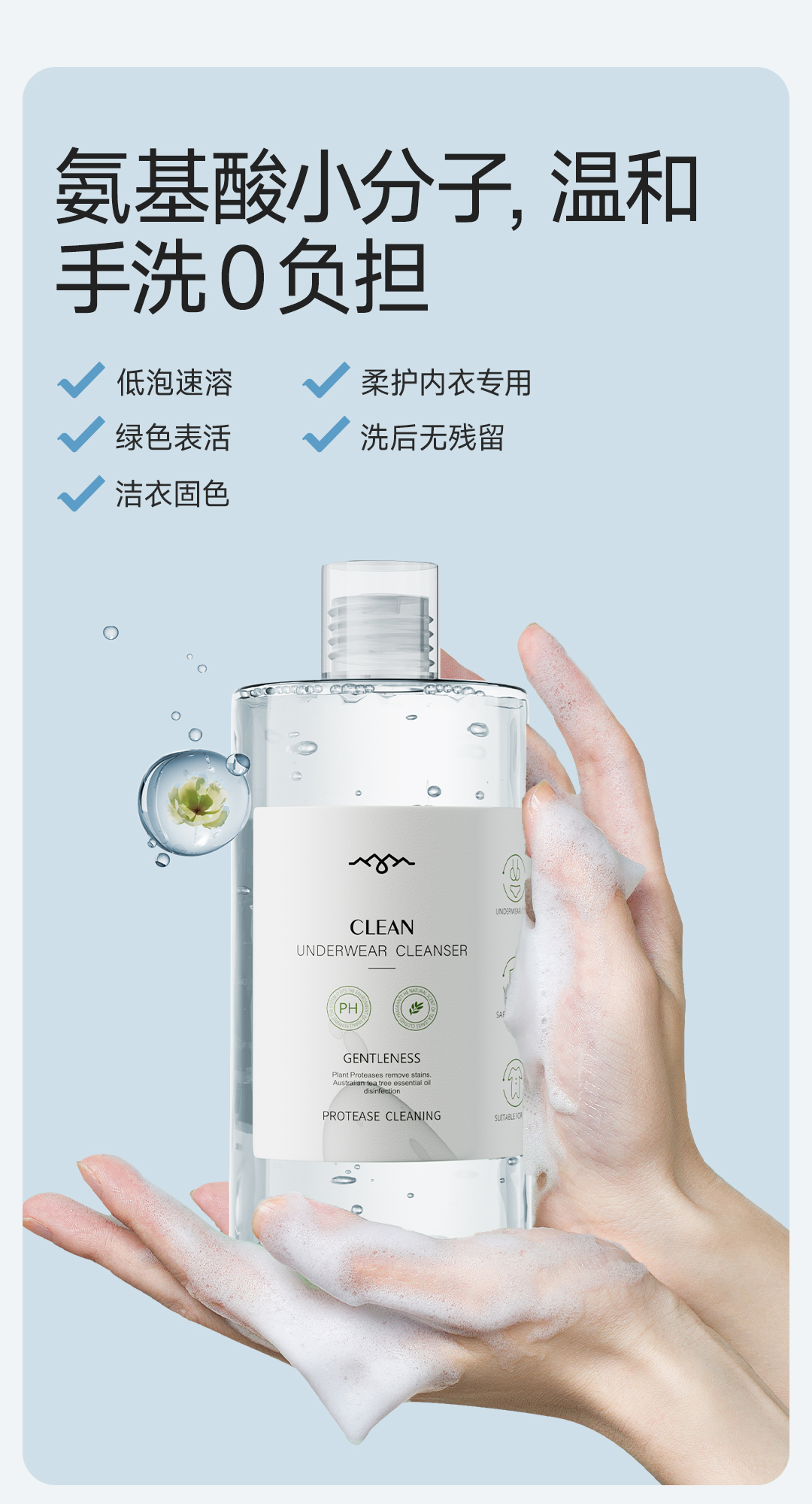 【小莉】海肌兰内裤清洗液550ml*3+内衣清洗液80ml*6+泵头*1 内衣洗衣液女士专用去血渍-xl