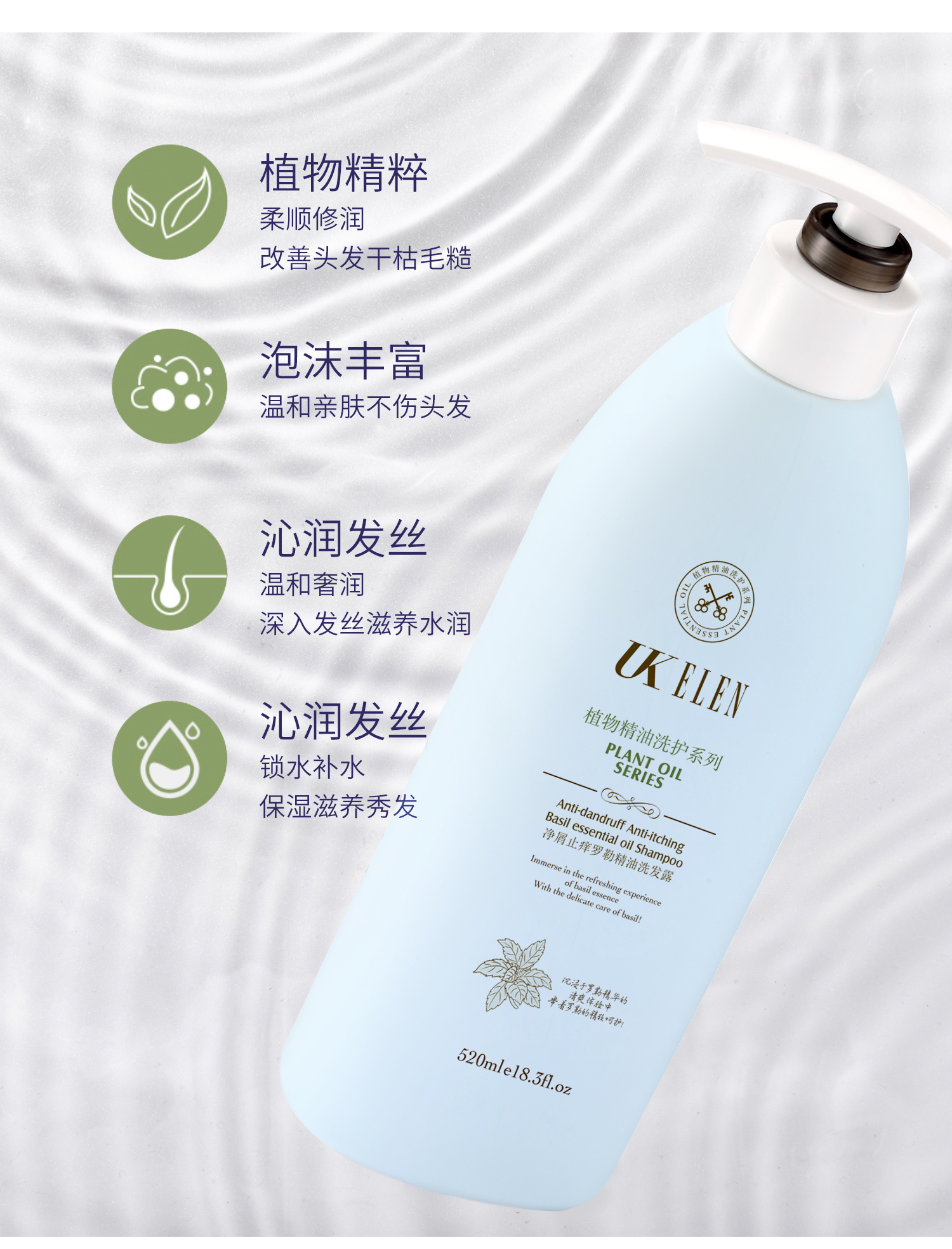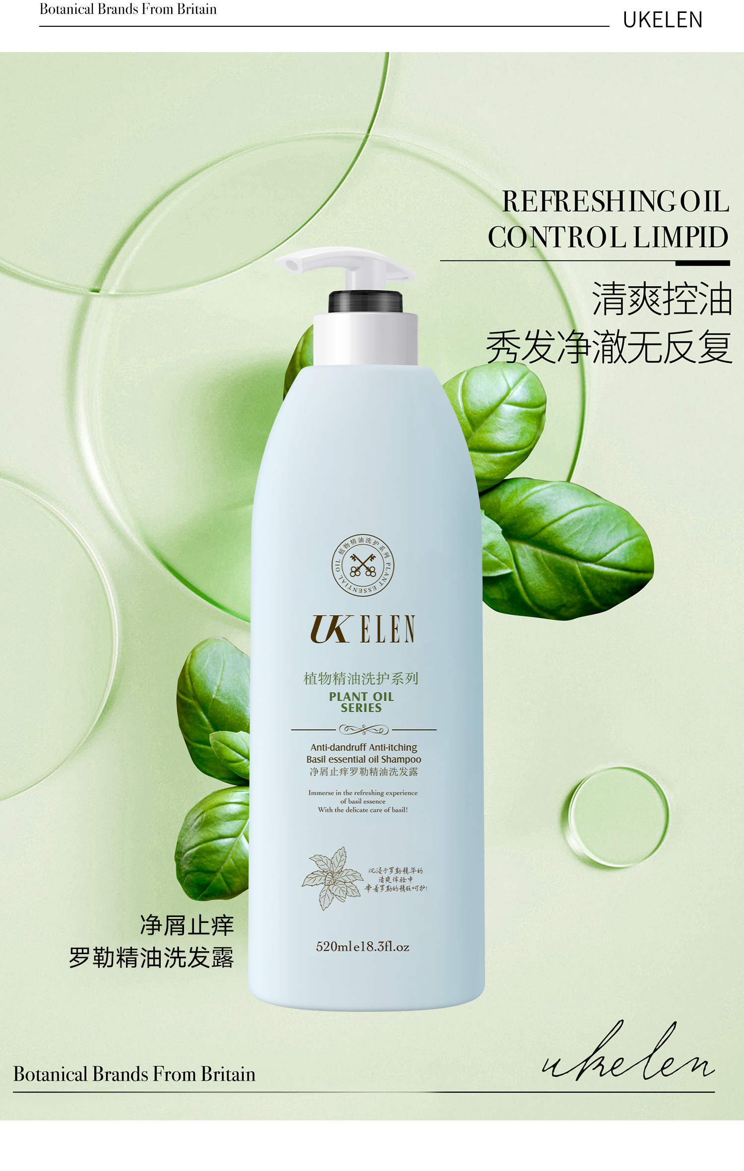 UKELEN丨净屑止痒罗勒精油洗发露 多规格可选