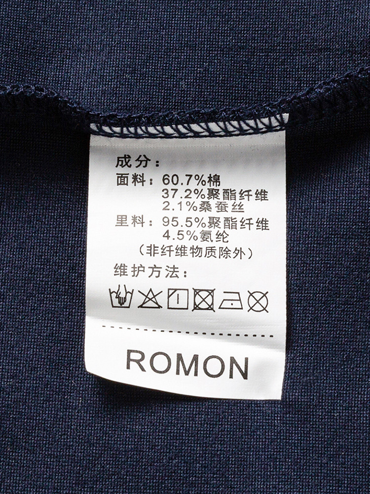 面料:60.7%棉 37.2%聚酯纤维 2.1%桑蚕丝