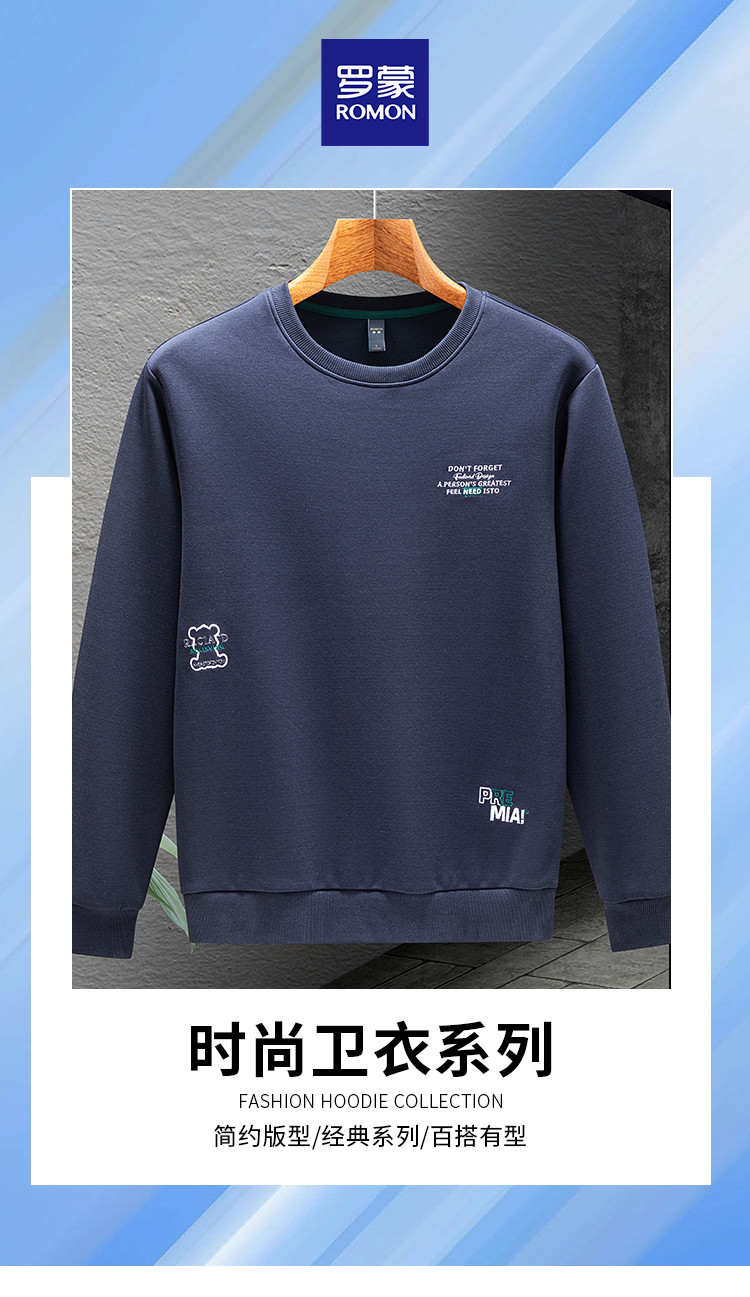 【7A抗菌含桑蚕丝】罗蒙春秋男装卫衣万针绣卫衣男士秋装上衣休闲百搭长袖T恤男