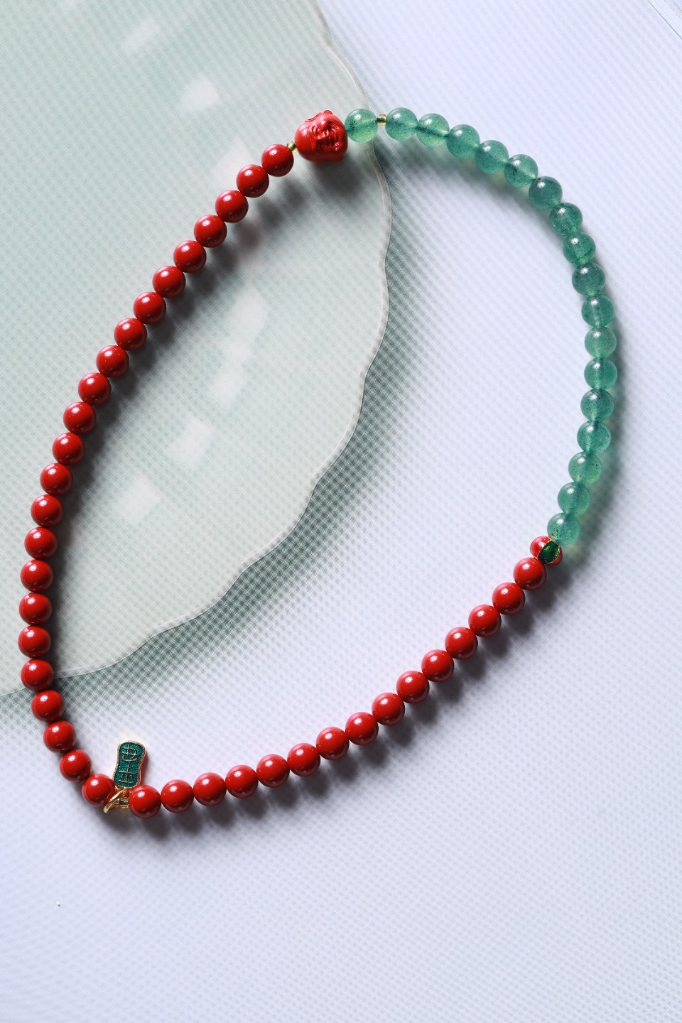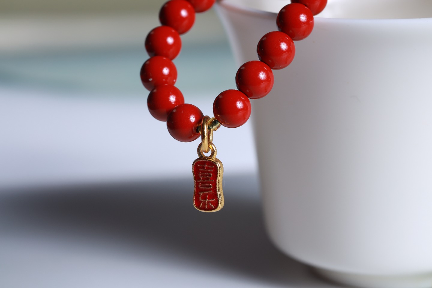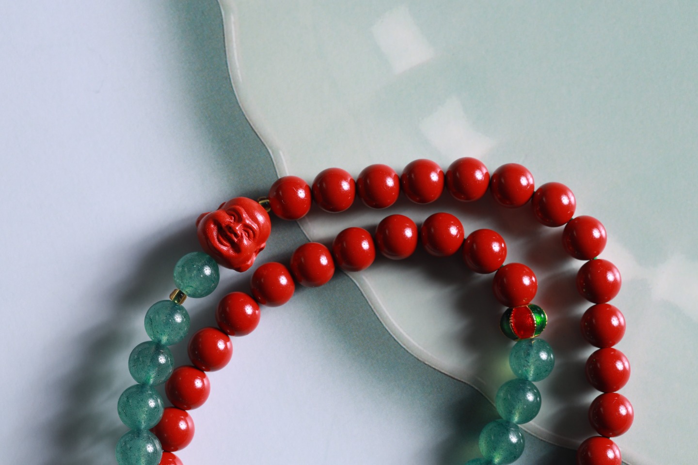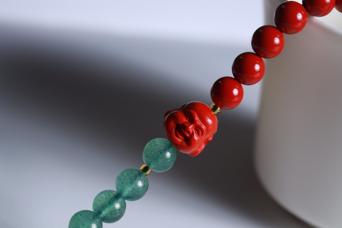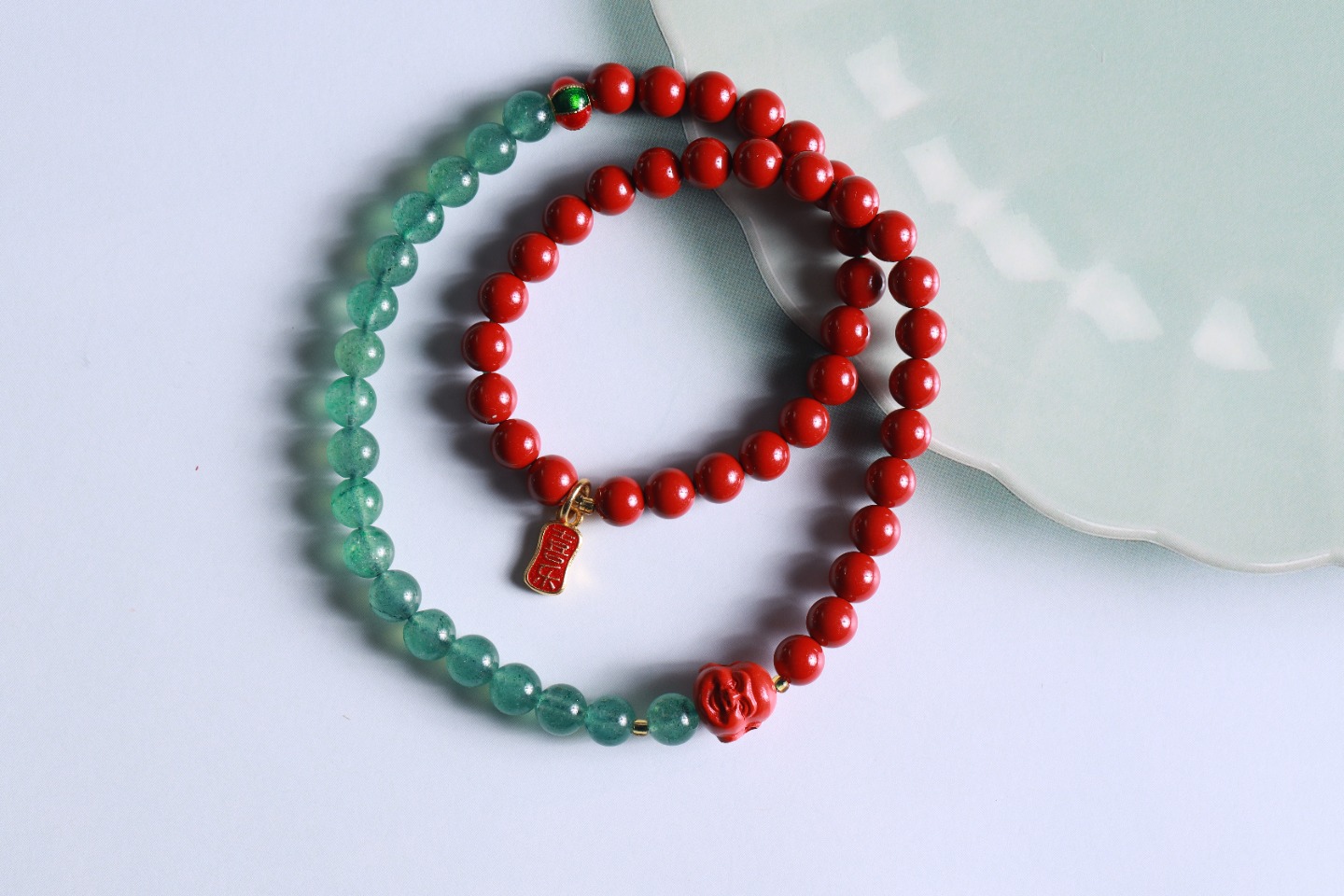 | 配件 | 绿草莓晶,朱砂小弥勒,树脂珠金色,沙金红绿双色灯笼珠,沙金彩色平安喜乐小吊坠 |