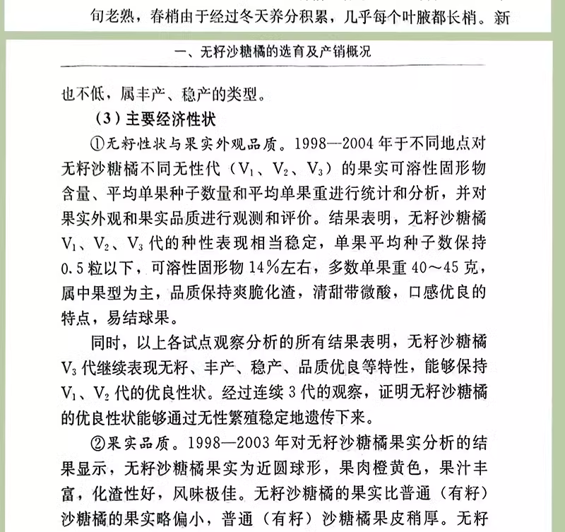 沙糖橘也称砂糖橘、十月橘、冰糖橘,是广东□□良的橘类品种之一,但种子过多的缺点限制了它的发展。我们课题组顺应市场的需要,开展了无籽沙糖橘的选育工作,经过20多年的努力,终于选出了无籽新品种,于2005年1月通过了广东省科技厅组织的科技成果鉴定,2006年1月通过了广东省农作物品种审定。由于无籽新品种不仅克服了原品种多籽的缺点,而且外观和食用品质极优、早结果、丰产稳产性好、抗逆性强、适应性广,各地发展迅速,目前仅广东省的种植面积就已超过13.3 万公顷,广西等地也在积极发展。 随着无籽沙糖橘种植面积的扩大,总产量逐年增加,市场逐渐趋向饱和,售价将会有所下降。近年来种植无籽沙糖橘的管理成本逐年增加,加上贮运保鲜技术跟不上,收益越来越少。2008年已出现收购价与成本价持平,有些地方甚至收购价还低于成本价的现象,这对无籽沙糖橘的产业发展非常不利。